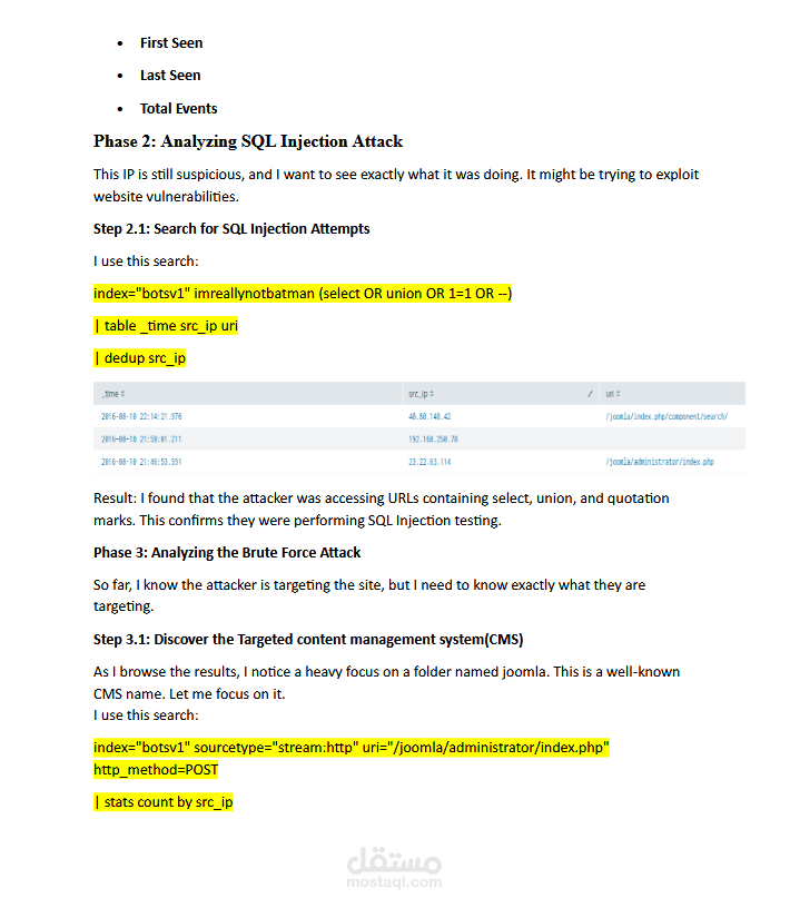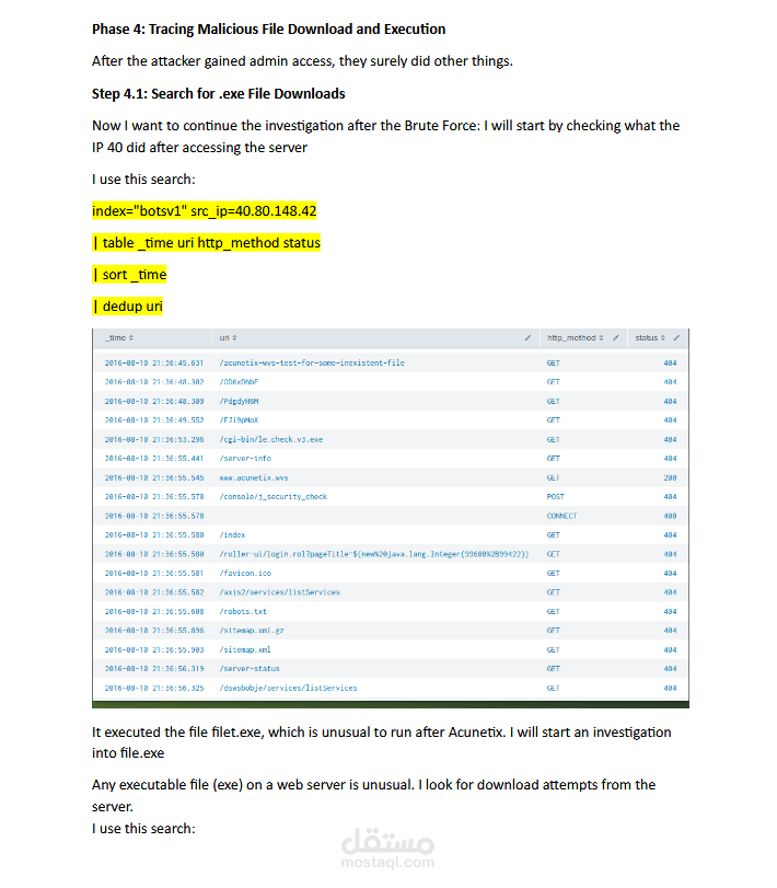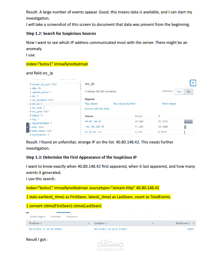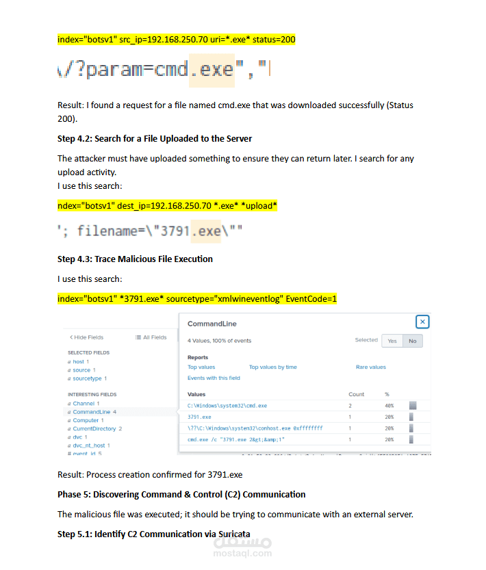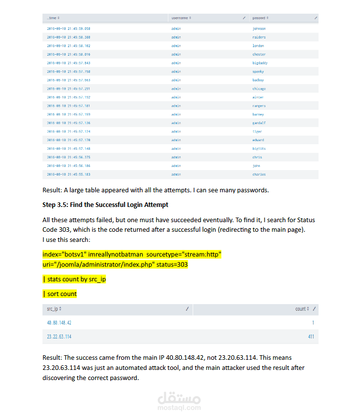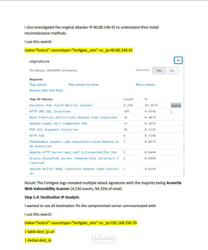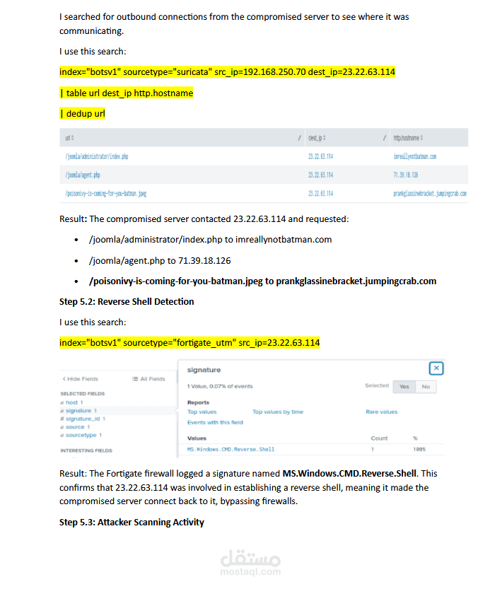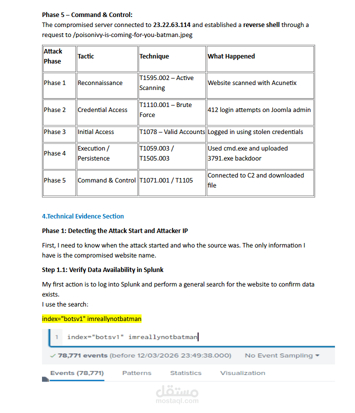 كمان التقرير فيه **detailed Splunk queries**، و**forensic evidence**، و**Indicators of Compromise (IOCs)**، بالإضافة إلى **complete attack timeline** مبني على أكتر من **log source** زي: