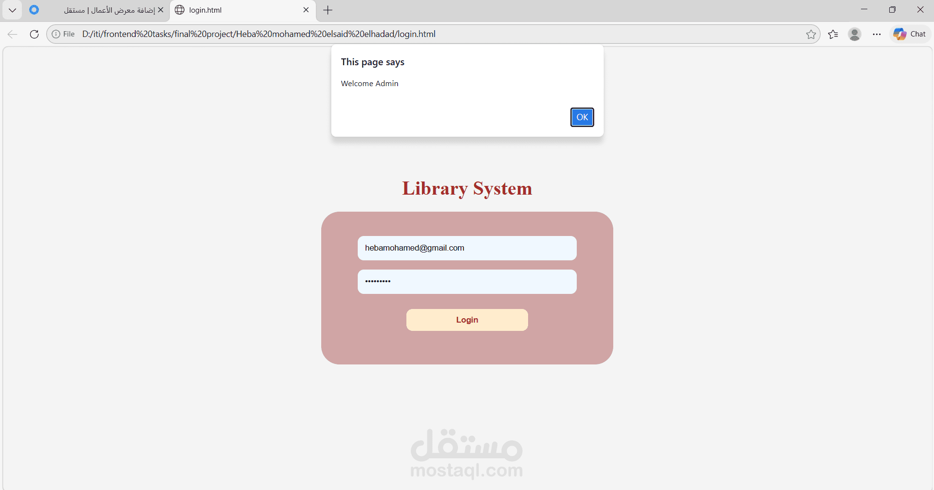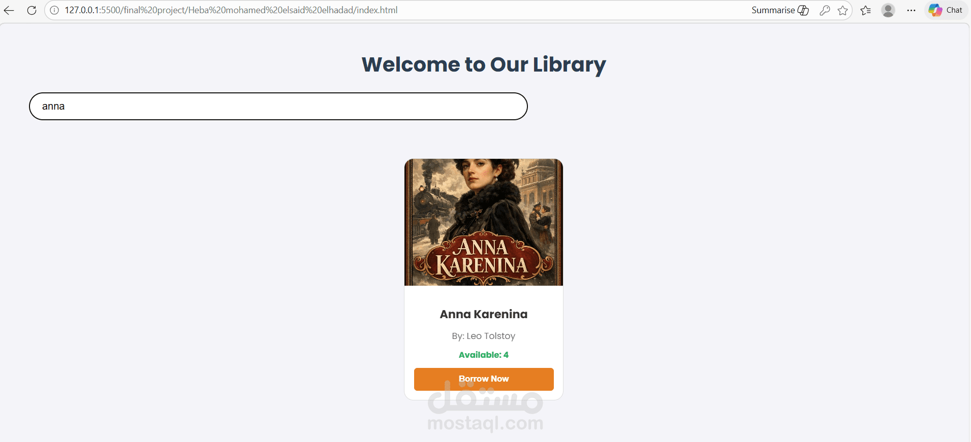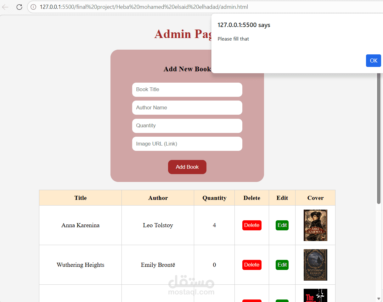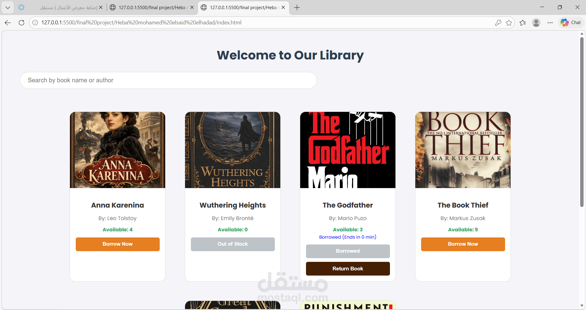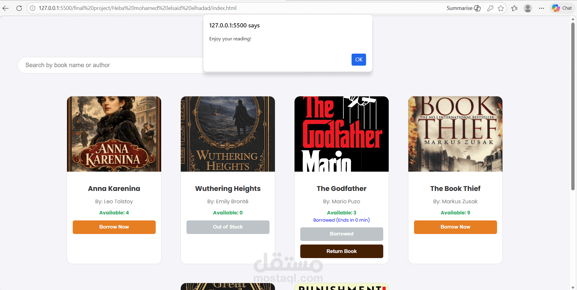 تطبيق ويب لإدارة الكتب والاستعارة الرقمية، يعتمد على الـ JavaScript بشكل كامل لإدارة العمليات الحسابية والمنطقية (Logic).