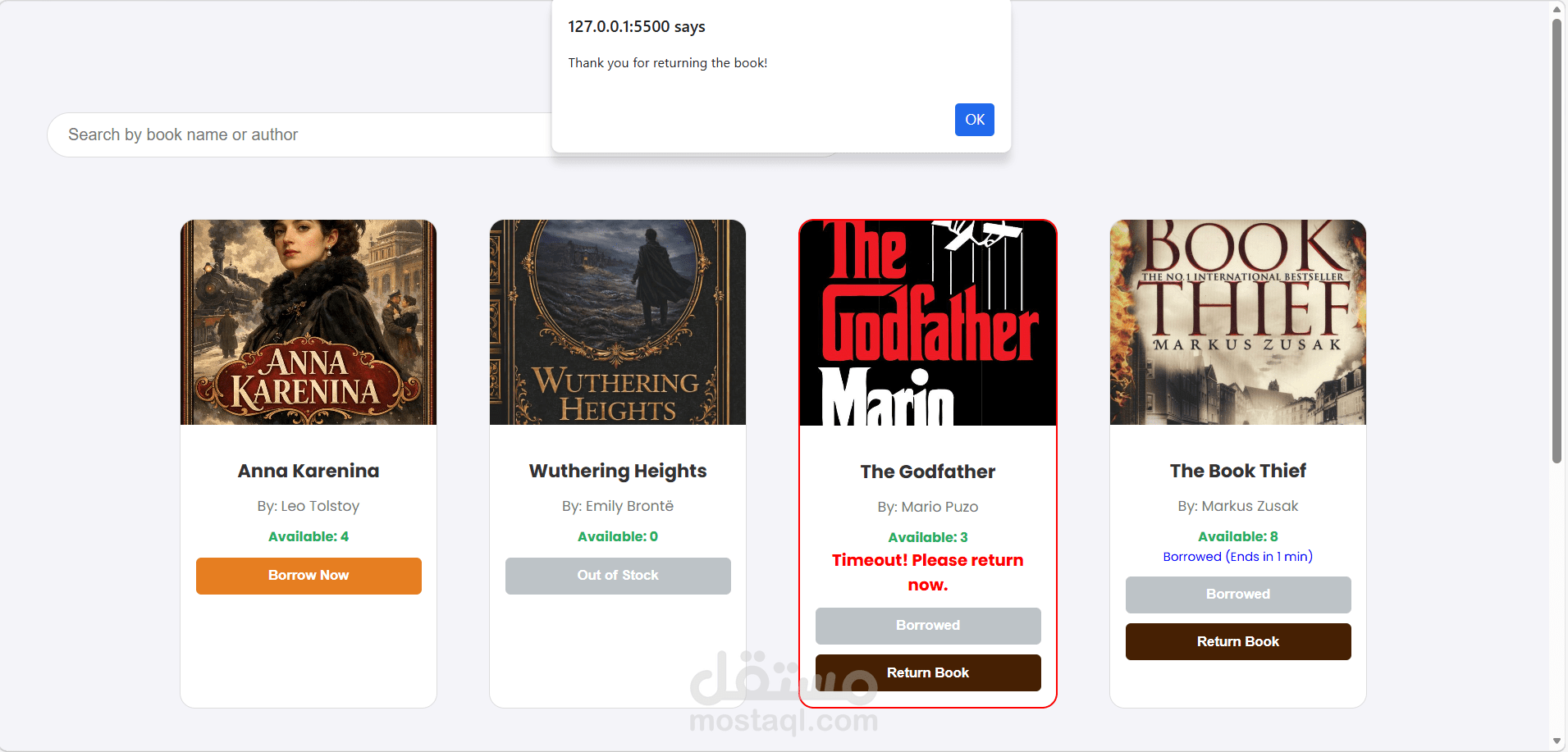 بناء نظام تنبيهات عند تأخر إرجاع الكتاب (Timeout notification).
