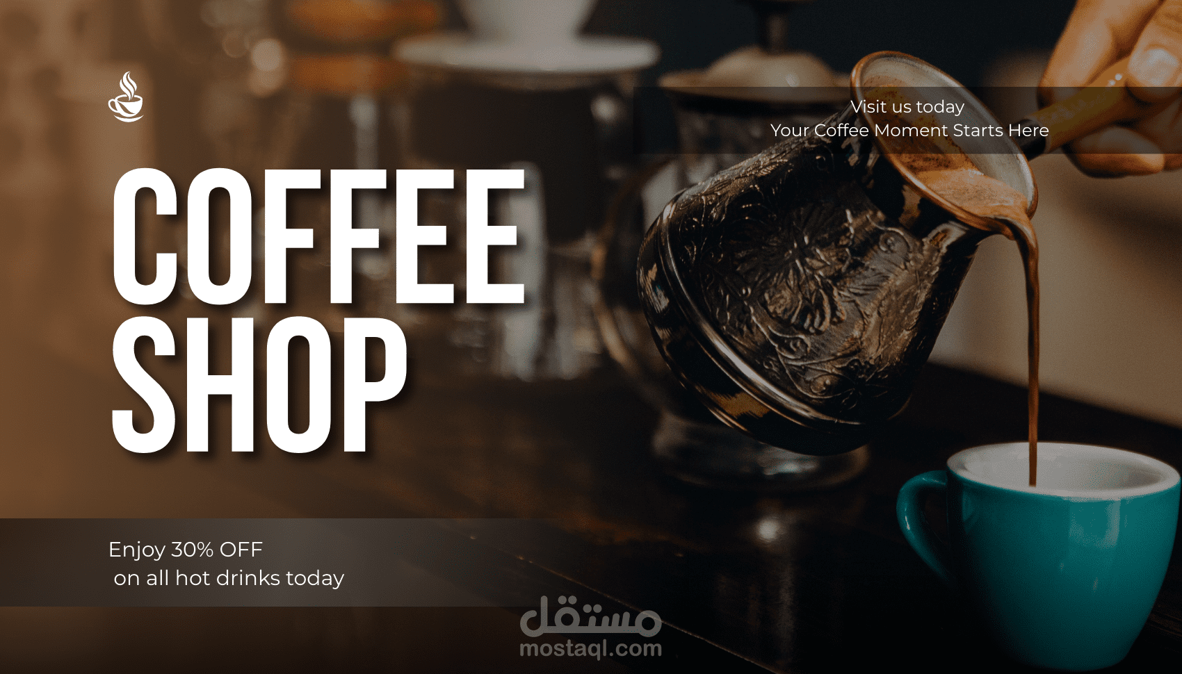 I designed a modern social media post for a coffee shop promotion using Canva.