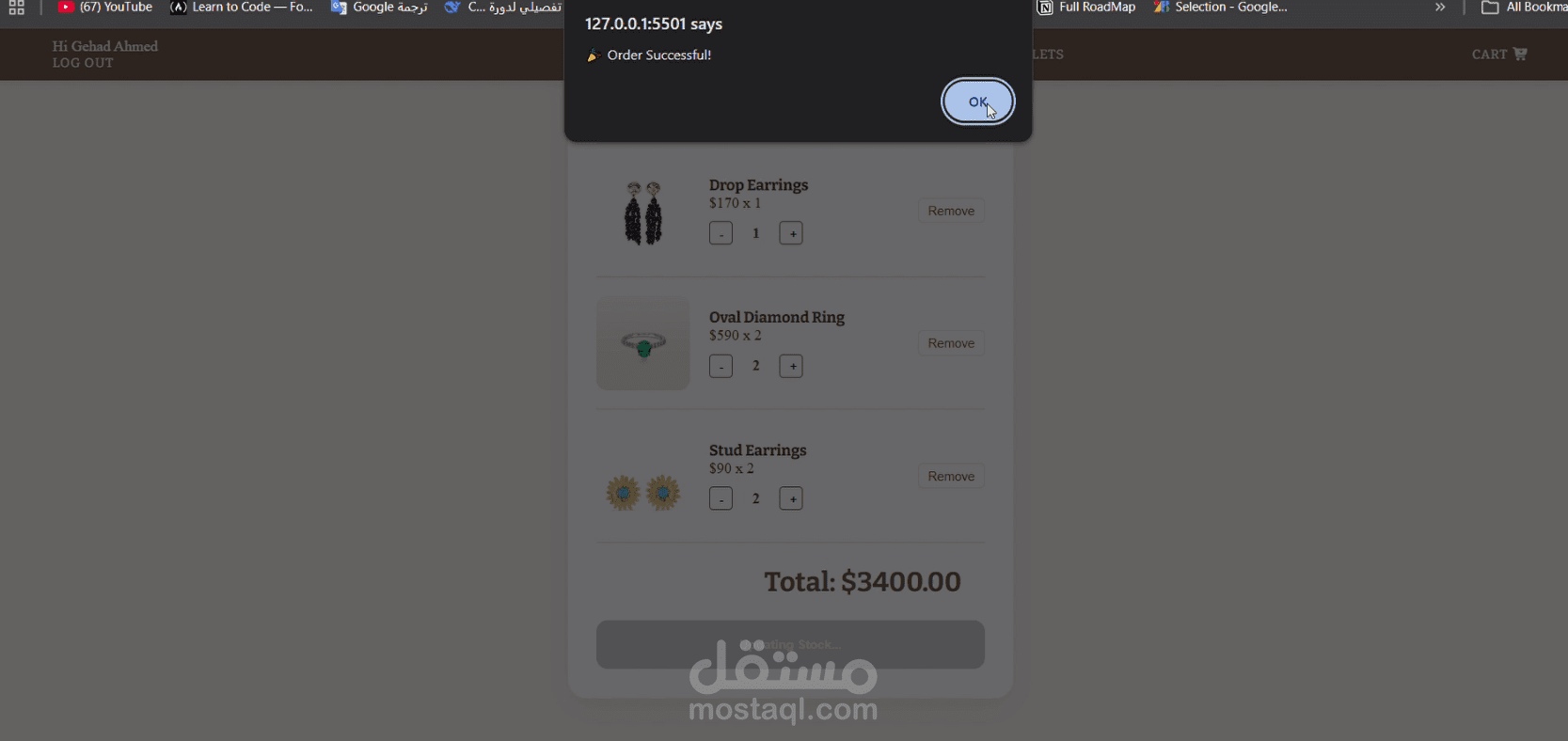 • Created a Smart Cart system utilizing LocalStorage for persistent shopping experiences and stock validation.
