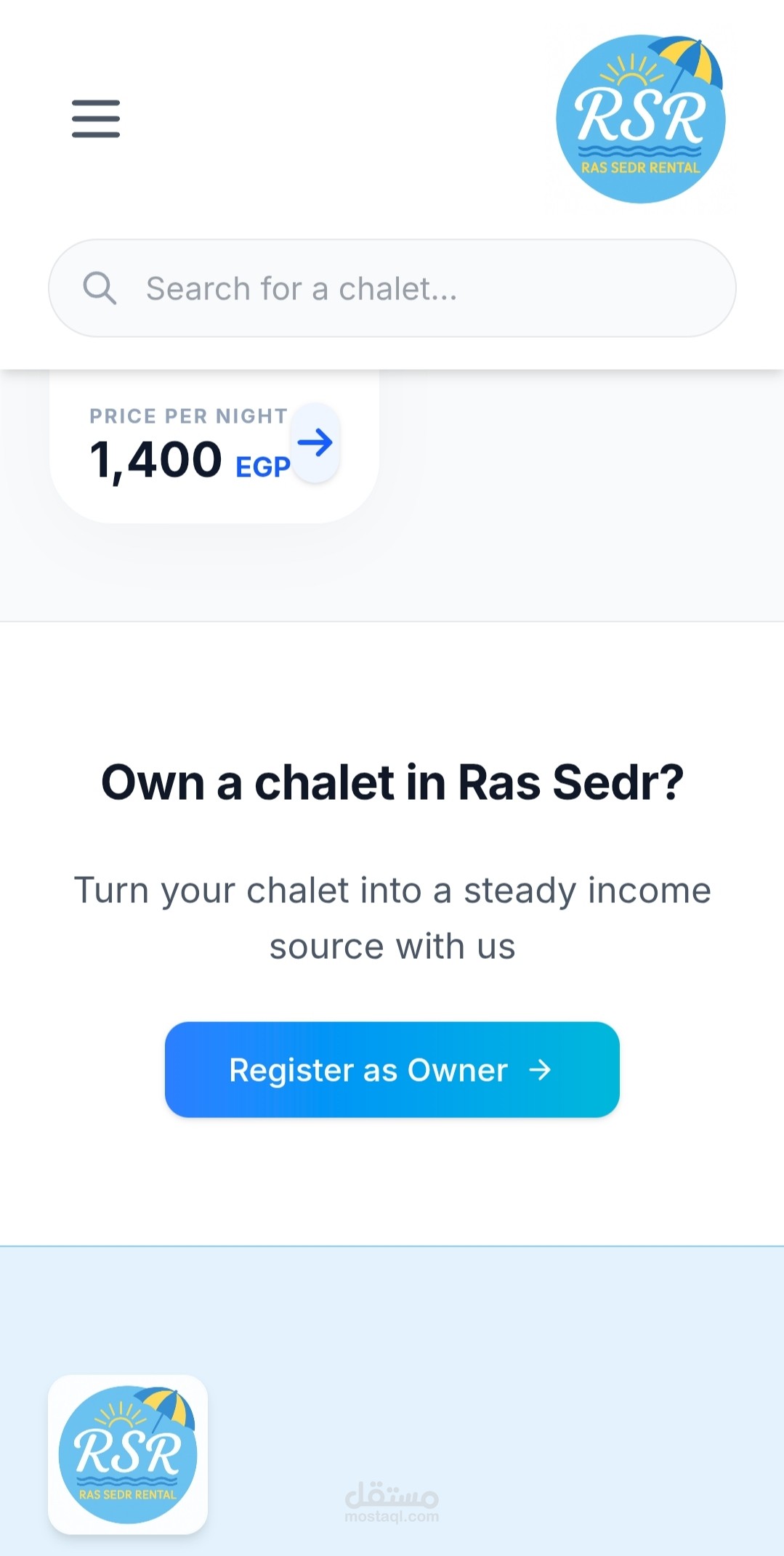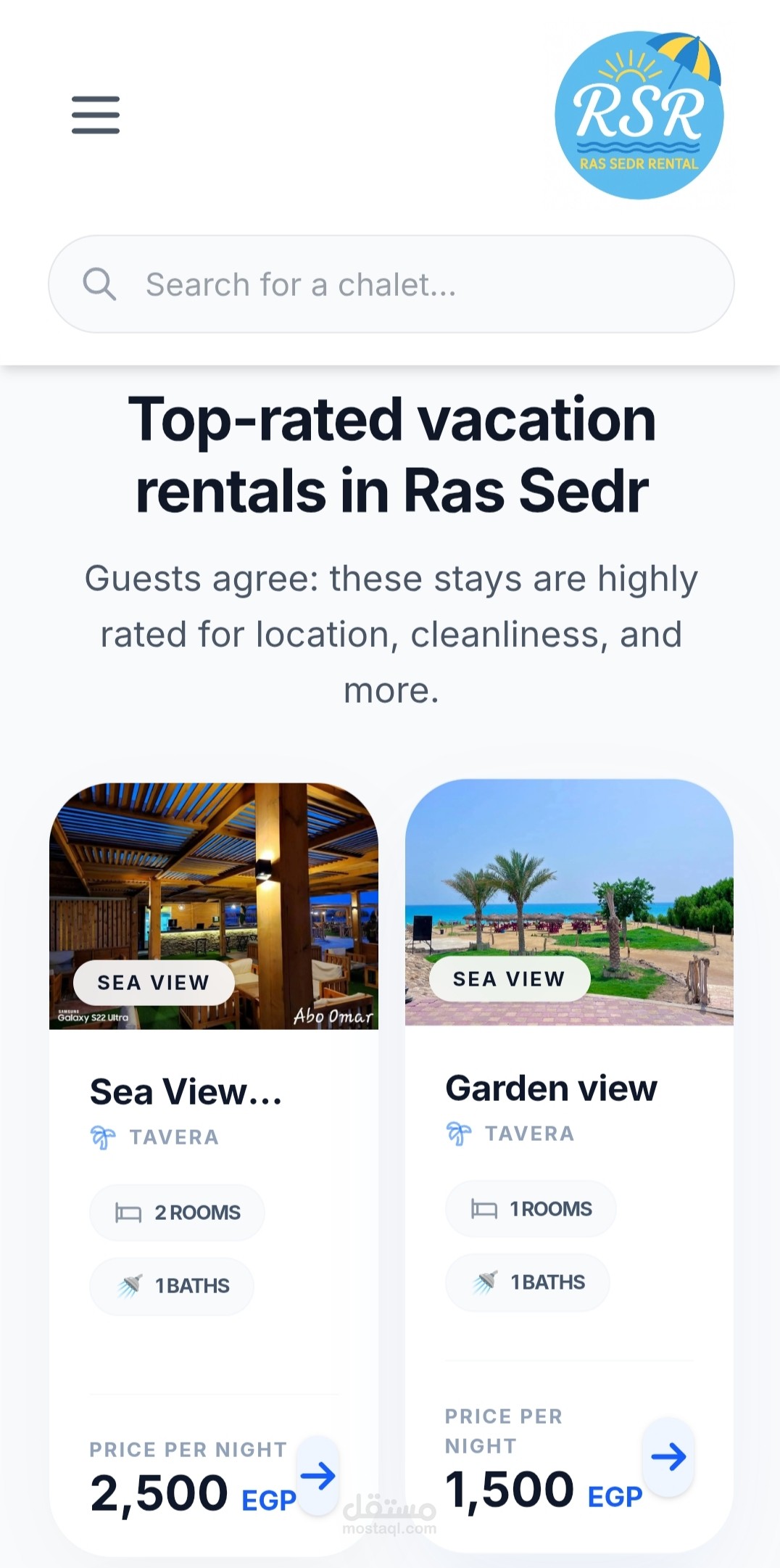 عنوان المشروع: Ras Sedr Rental – منصة رقمية متكاملة لحجز وتأجير الشاليهات