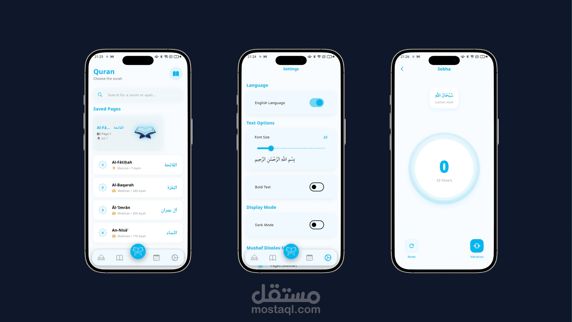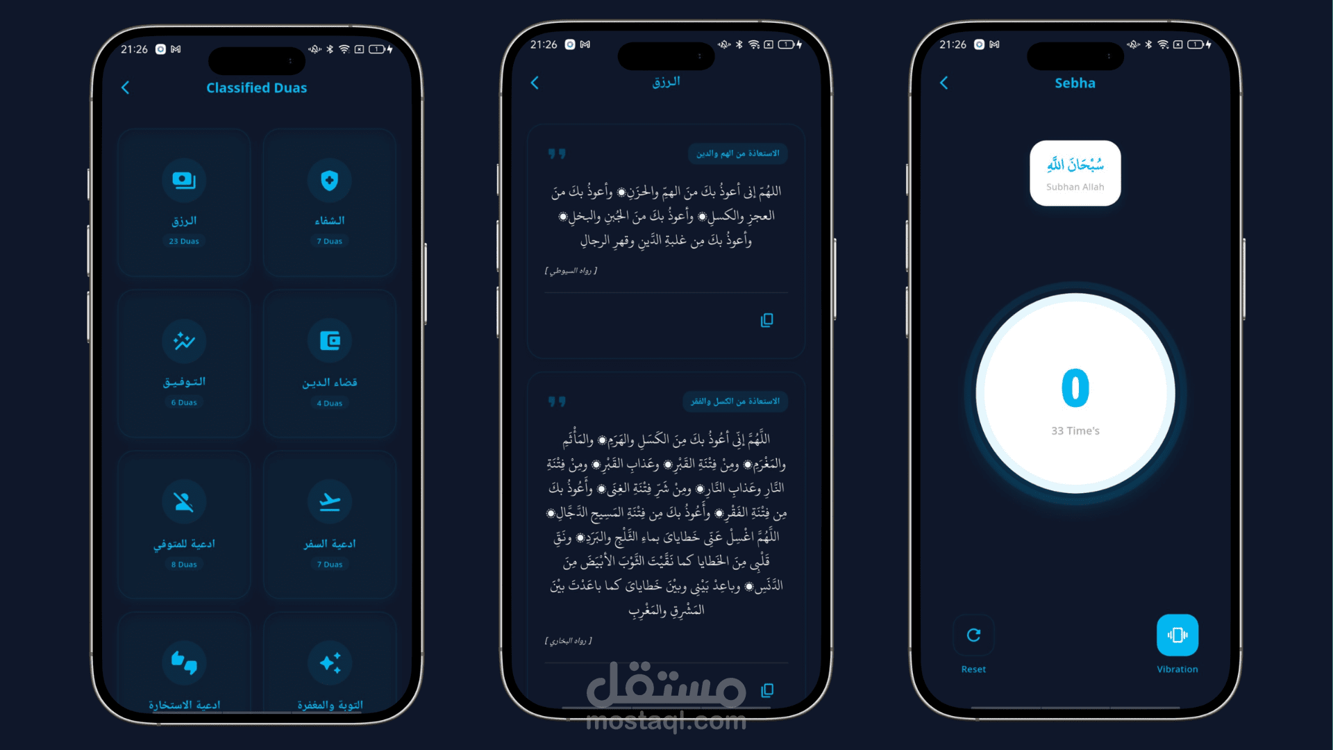 توفير مسبحة إلكترونية لعدّ الأذكار بطريقة مريحة مع تفاعل بصري ولمسي أثناء الاستخدام.