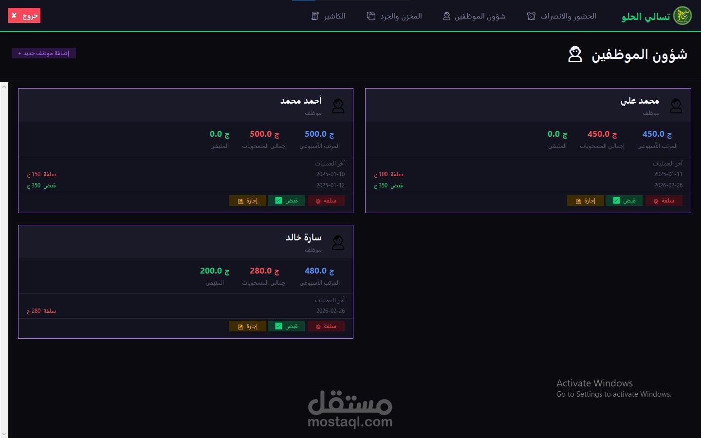 • Employee management and weekly salary tracking