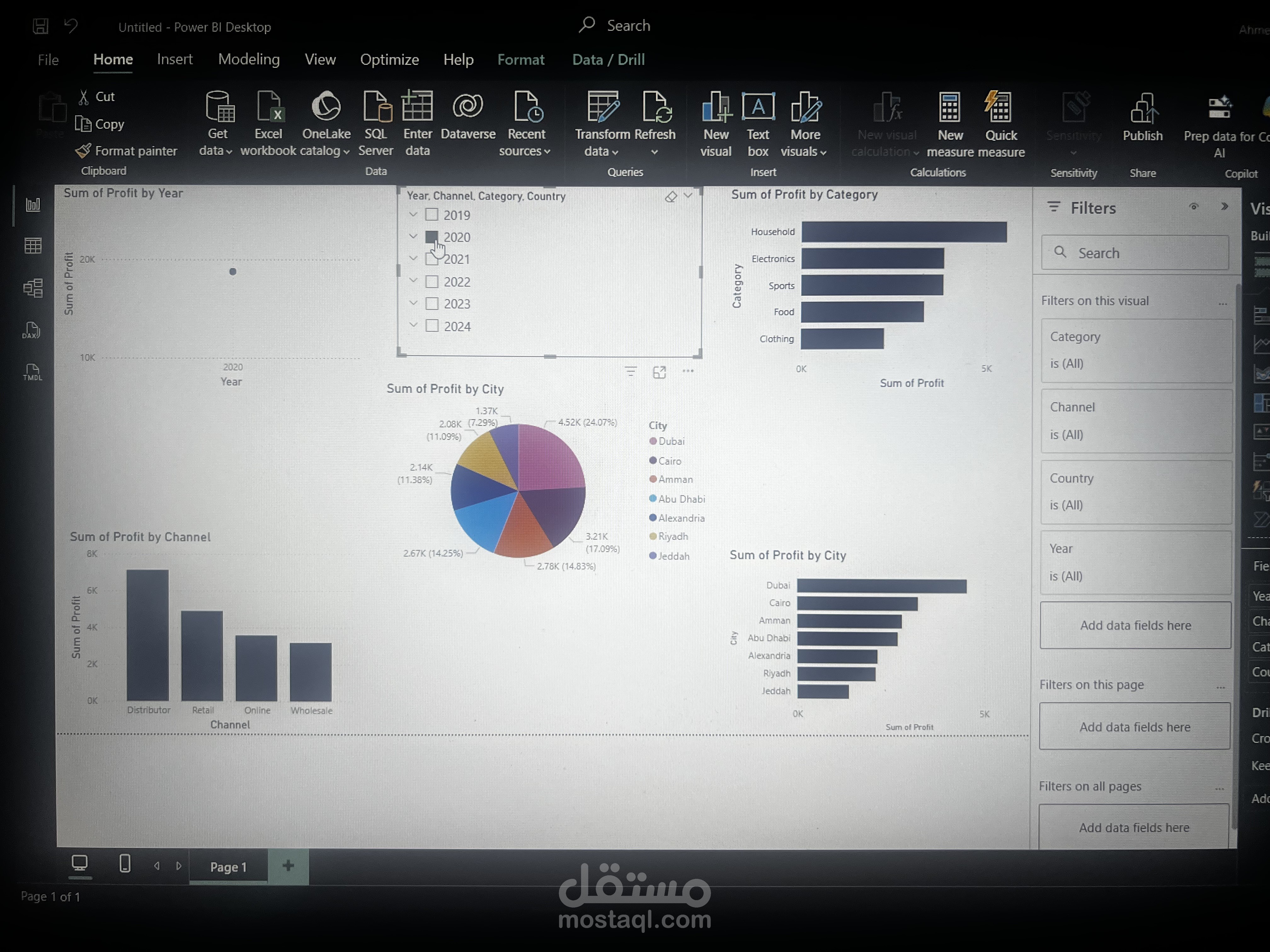 In this project, I designed an interactive data dashboard to analyze sales and profit performance across multiple dimensions such as year, city, product, category, and sales channel.