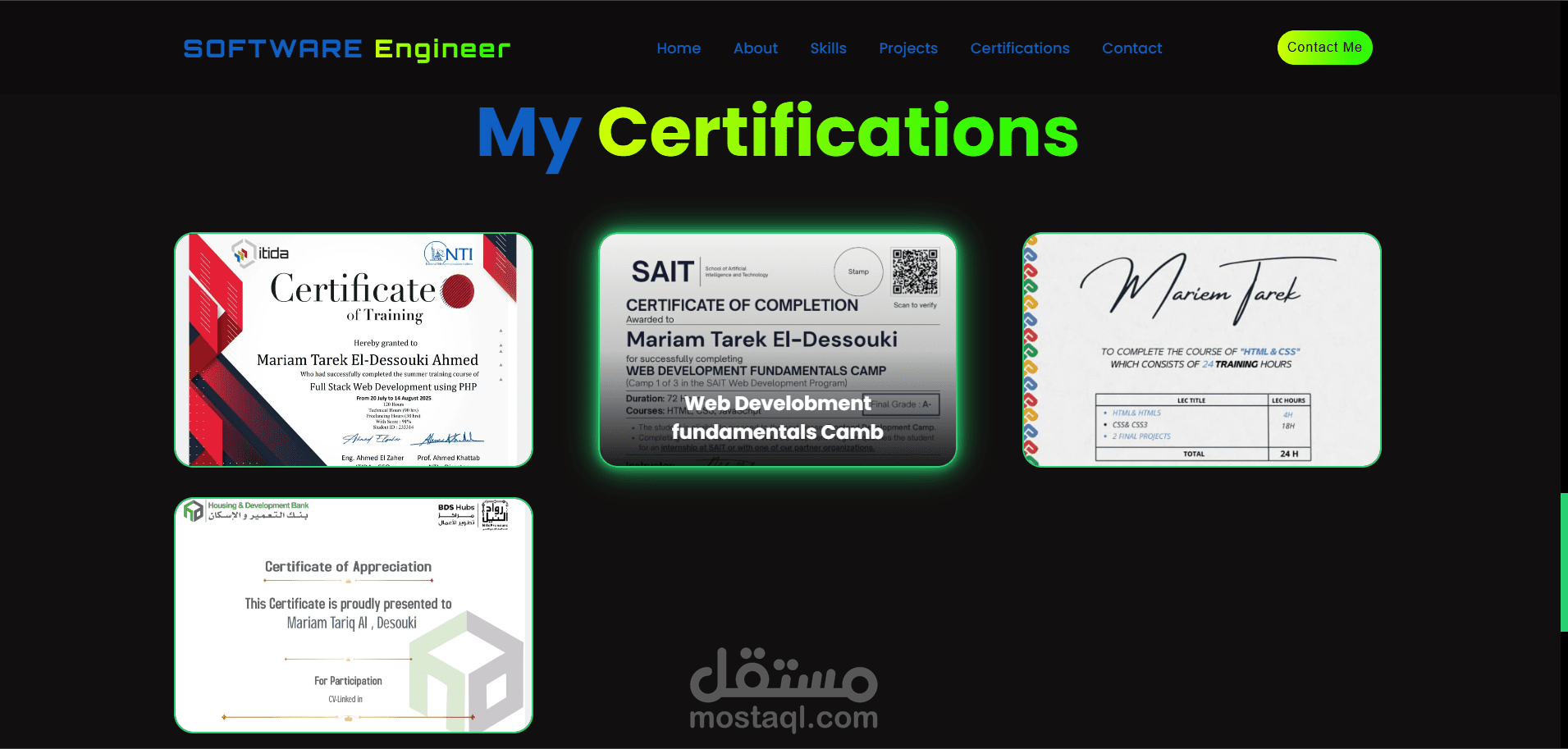 الشهادات العلمية والمهنية: توثيق للدورات والشهادات التي حصلت عليها من جهات [ذكر أسماء الجهات لو قوية مثل Google أو Coursera].