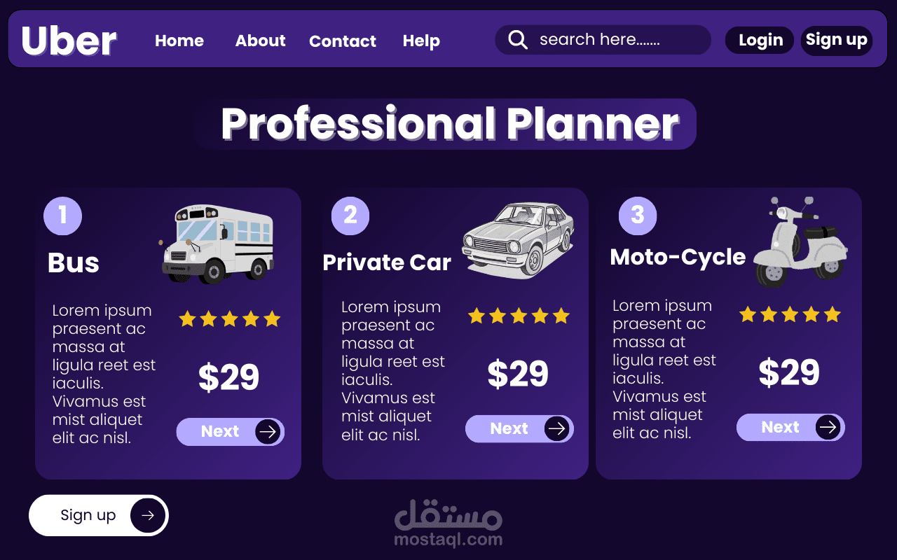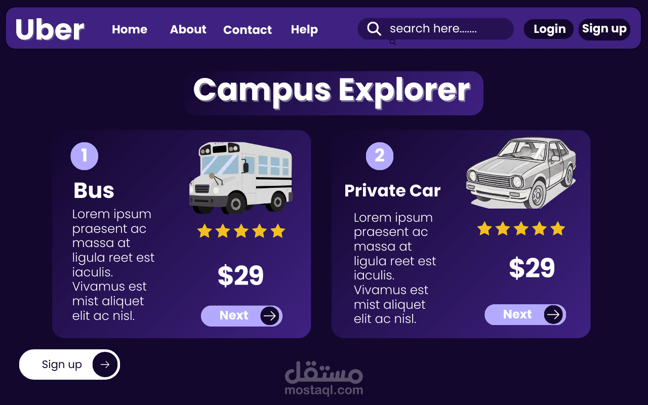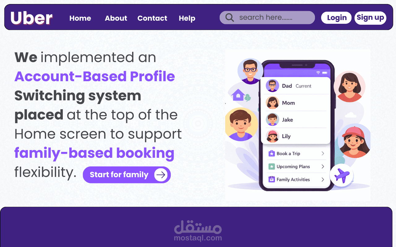 تصميم صفحة رئيسية (Landing Page) مستوحاة من فكرة تطبيق Uber مع التركيز على تقديم ميزة جديدة تسهّل استخدام التطبيق للعائلات.