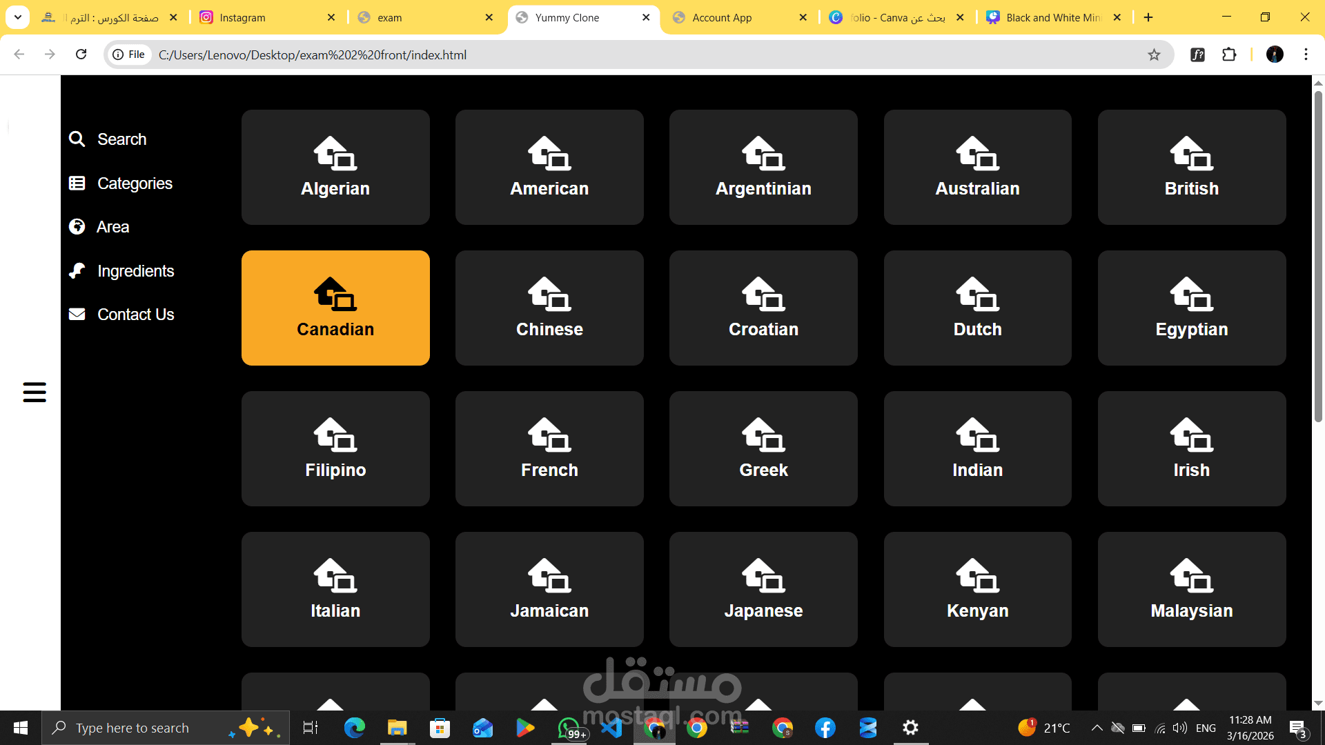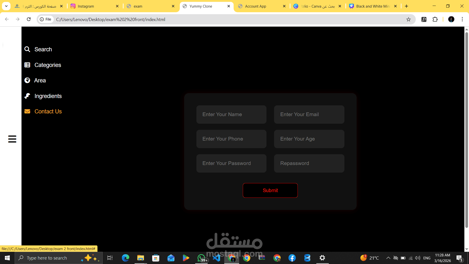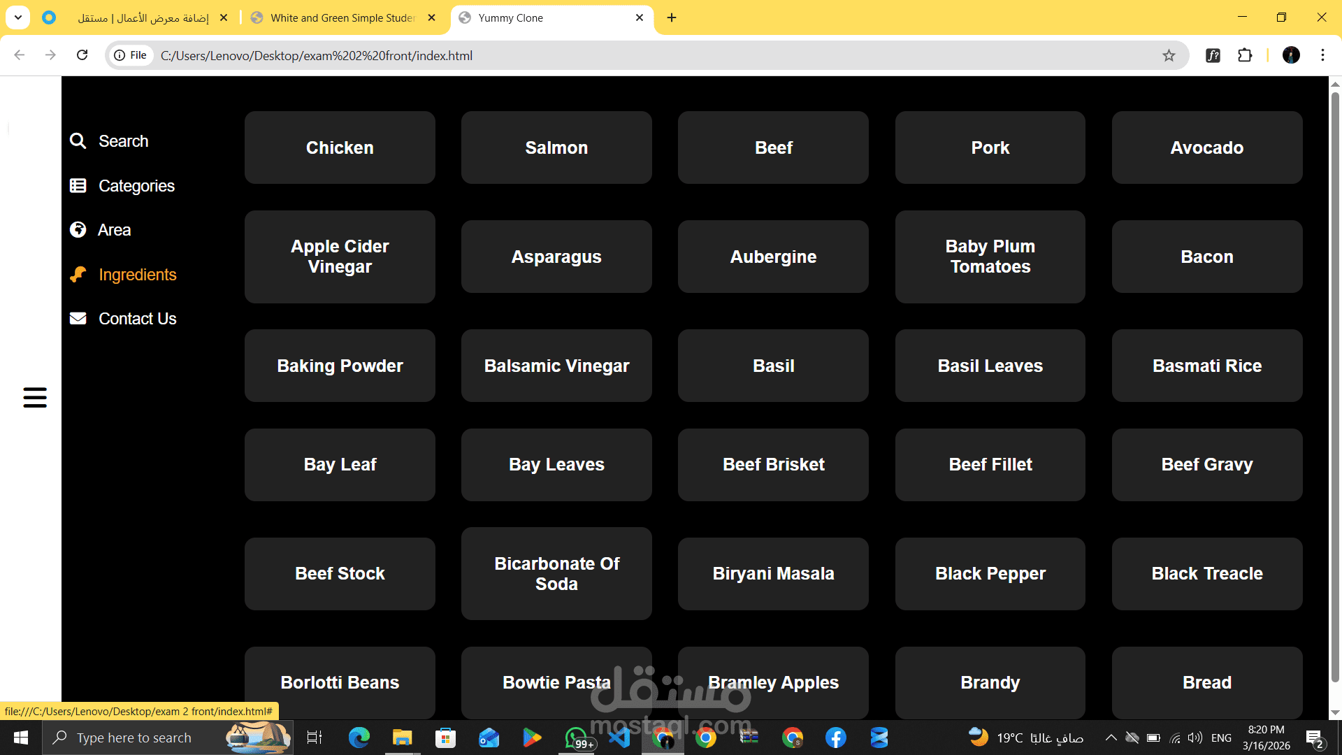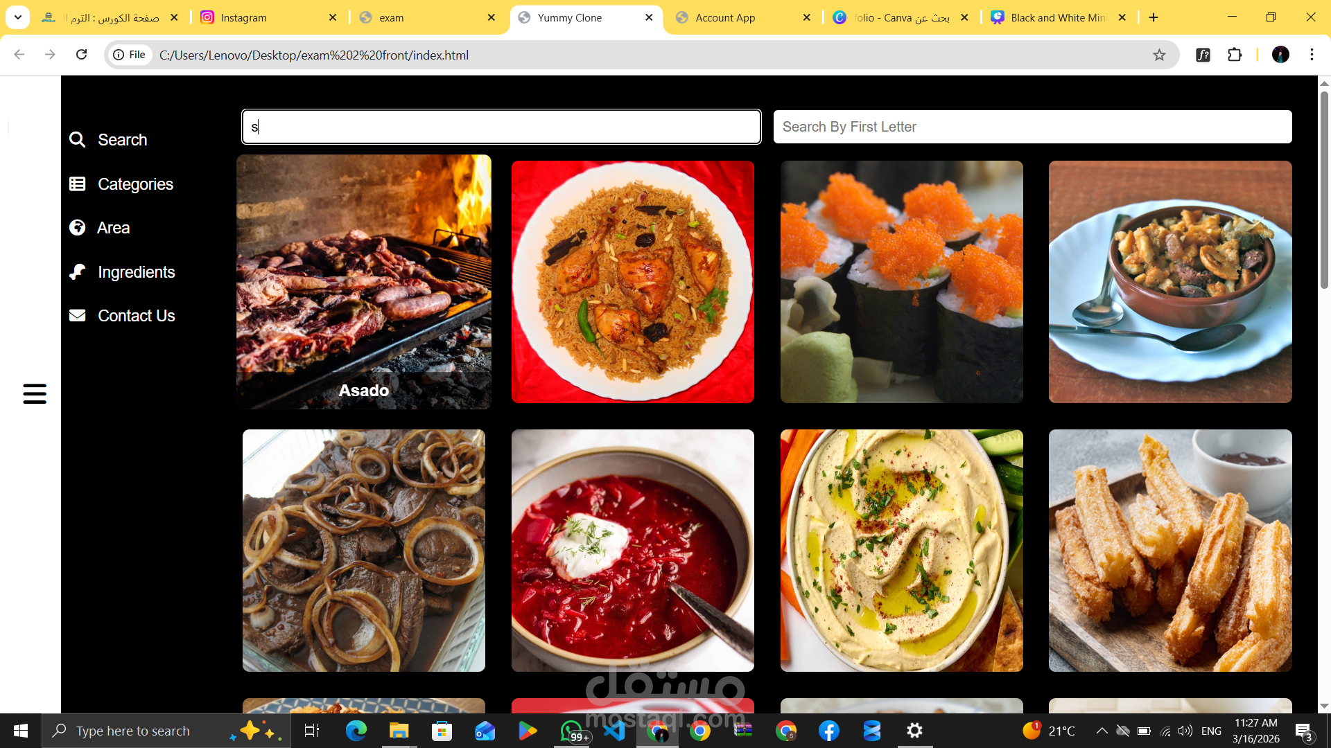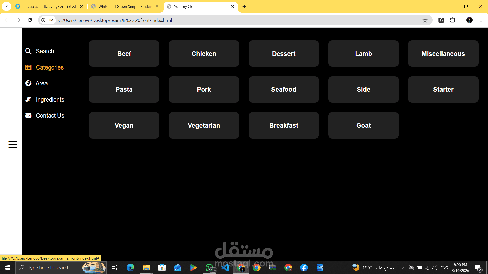 A front-end web application replicating the Yummy Exam website. Built using HTML, CSS, JavaScript, and TheMealDB API, it features a dynamic meal search, categories, and responsive design, closely matching the original site’s functionality.