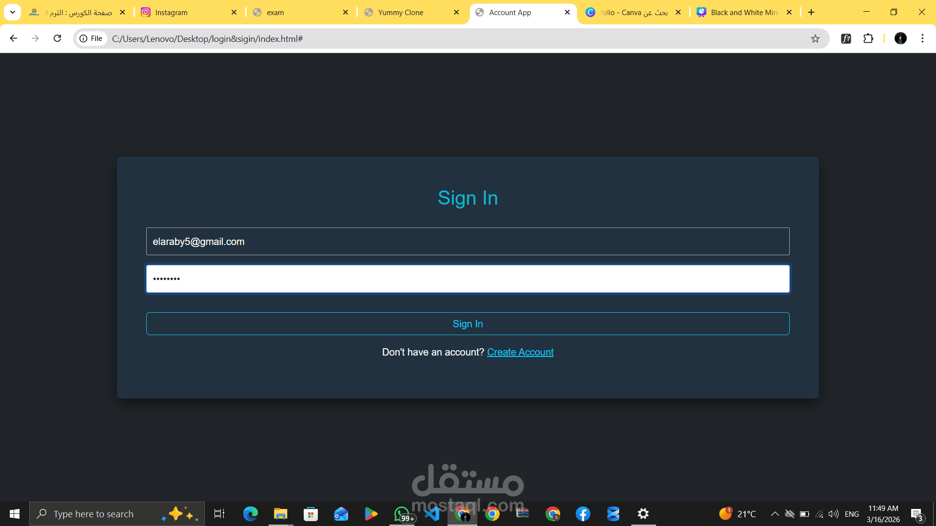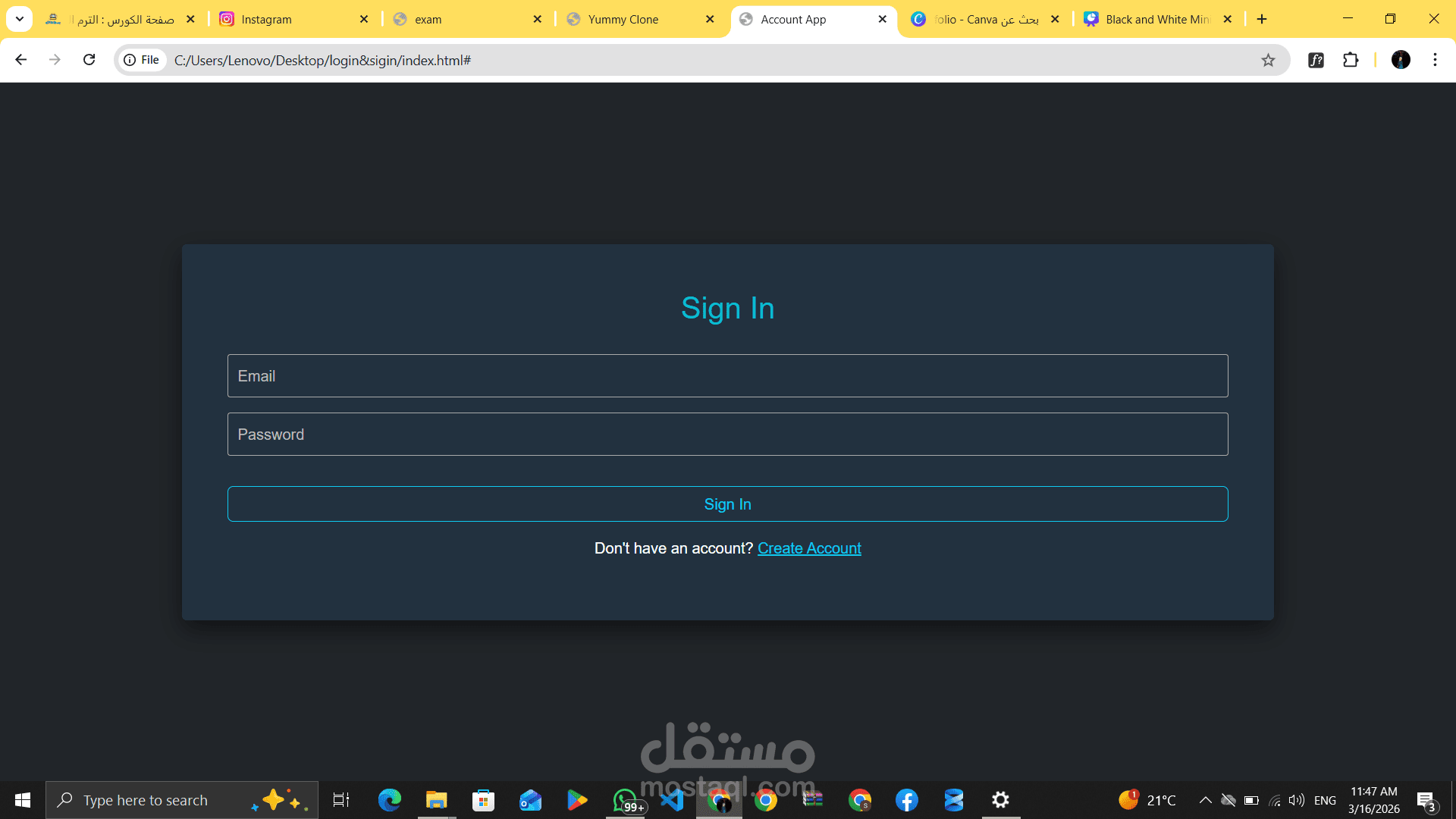 A user authentication system allowing users to create an account, log in, and log out. Built with a clean interface, it ensures a smooth and secure user experience.