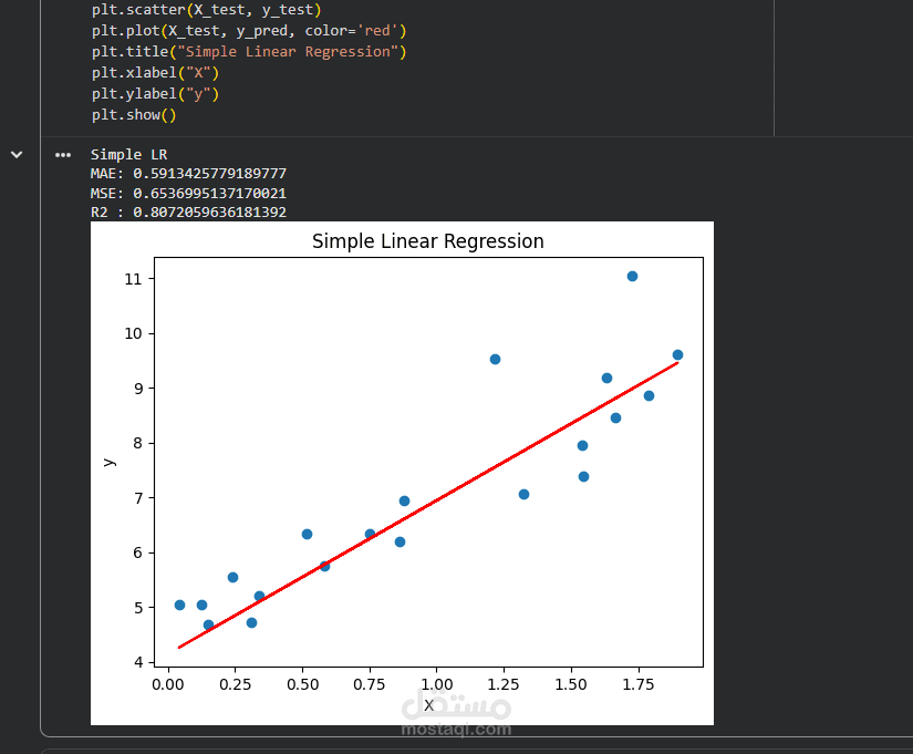 Simple Linear Regression للتنبؤ بالعلاقة الخطية بين المتغيرات.