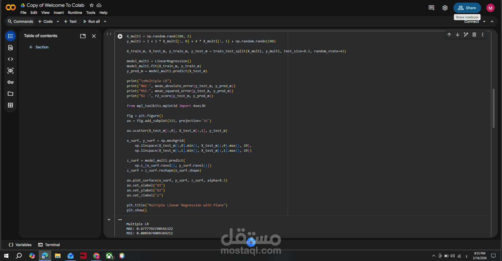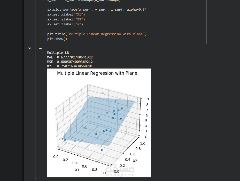 3D Linear Regression لدراسة العلاقة بين أكثر من متغير مستقل ومتغير تابع.