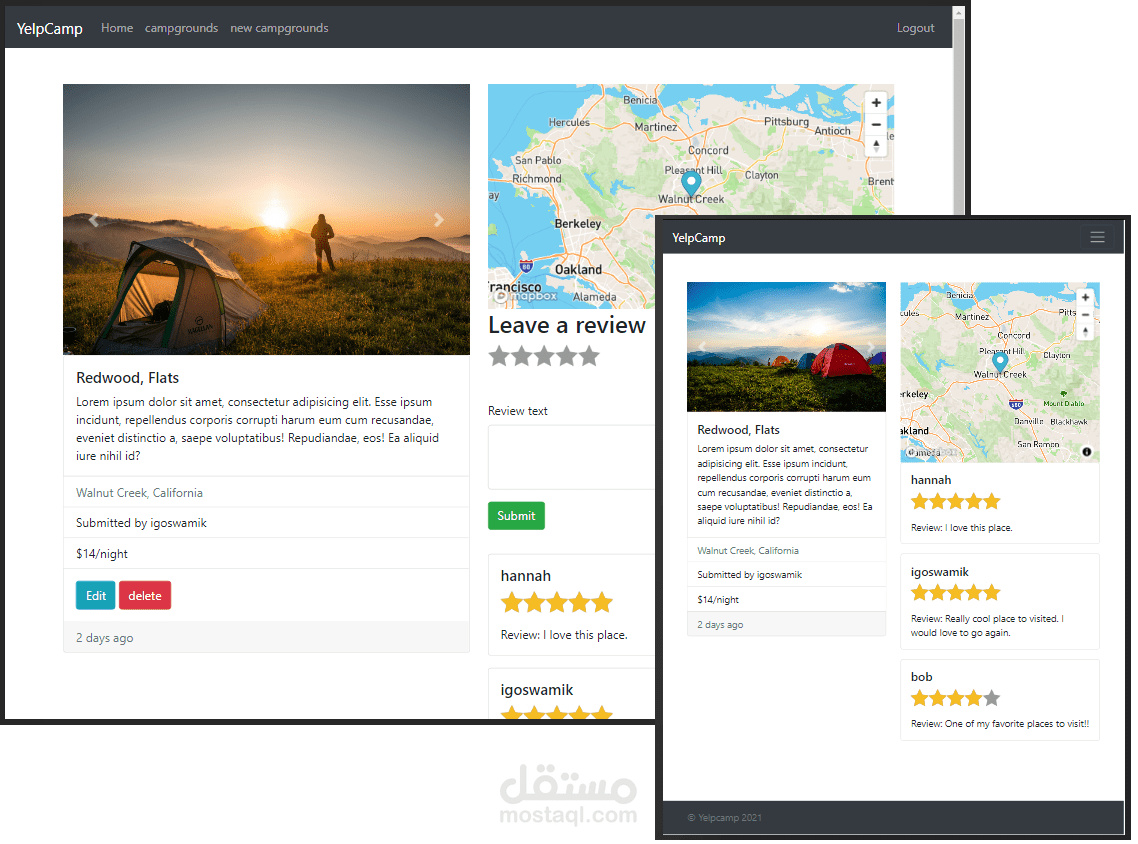 YelpCamp is a full-stack website project where users can create and review campgrounds