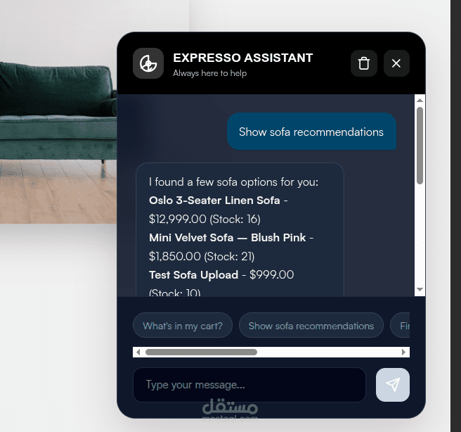 Smart Shopping Assistant: A built-in AI chatbot that helps users find products and track their orders through natural conversation.