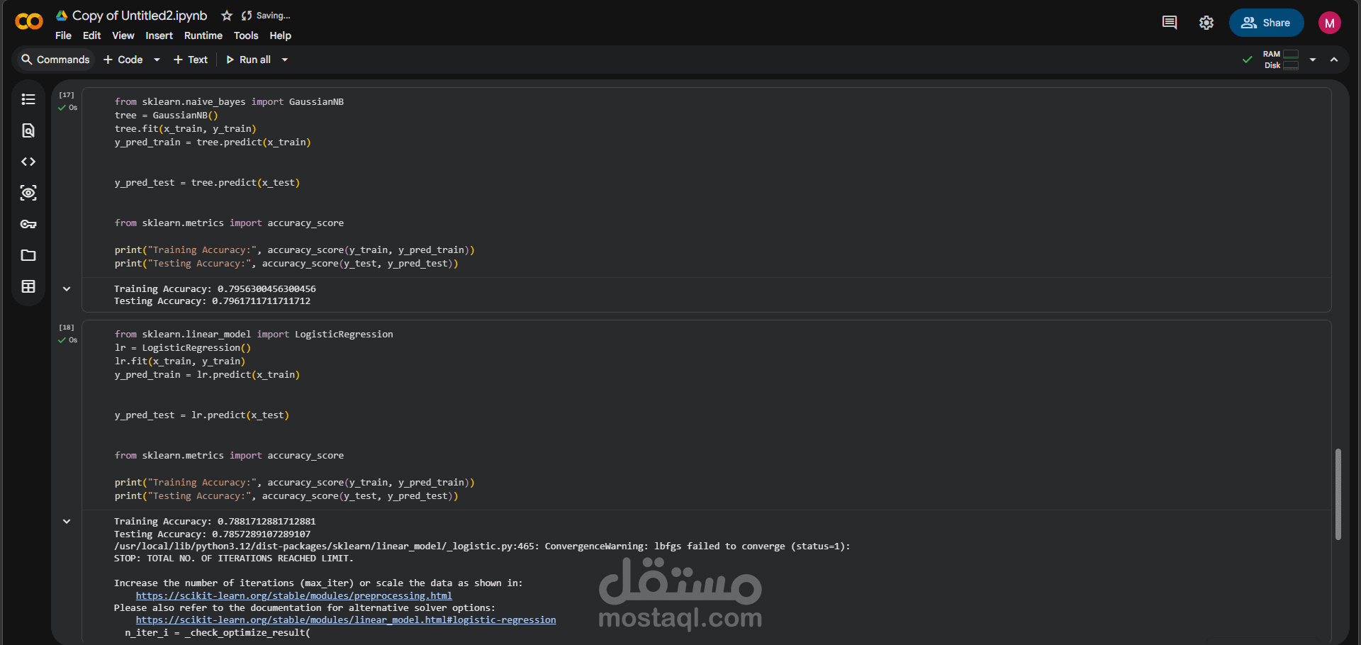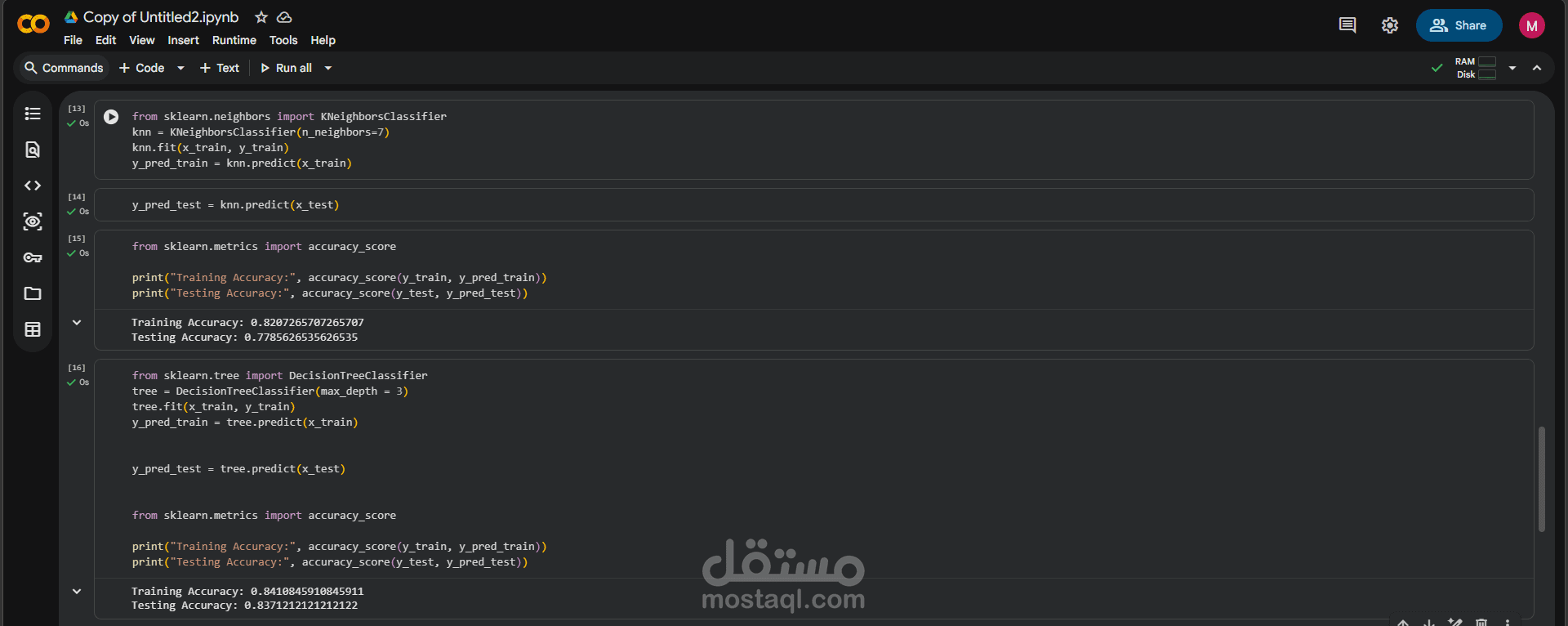 بعد ذلك تم تطبيق عدة نماذج مختلفة من خوارزميات تعلم الآلة لتصنيف مستوى الدخل. كما تم مقارنة أداء هذه النماذج باستخدام مقياس الدقة (Accuracy) لتحديد النموذج الأكثر كفاءة في التنبؤ.