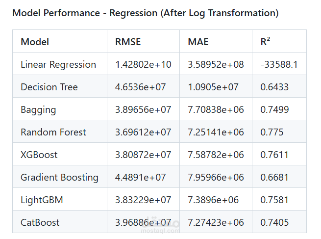 Model Performance - Regression (After Log Transformation)