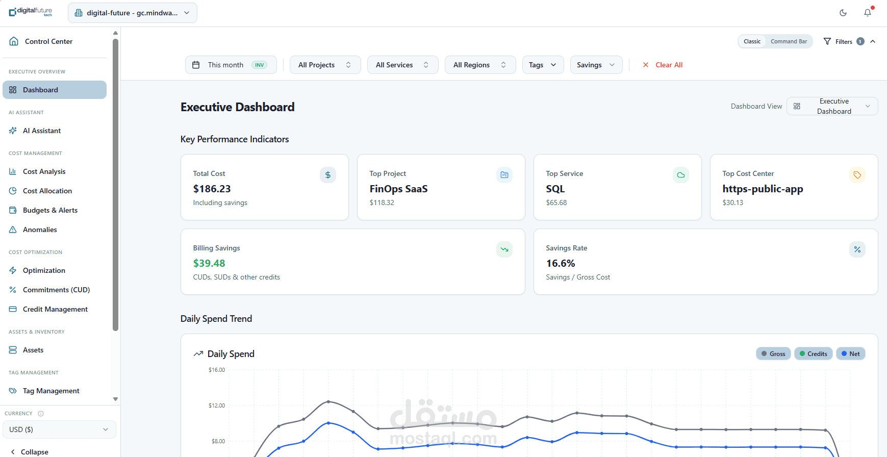 Cost analytics across multiple dimensions (projects, services, regions, tags)