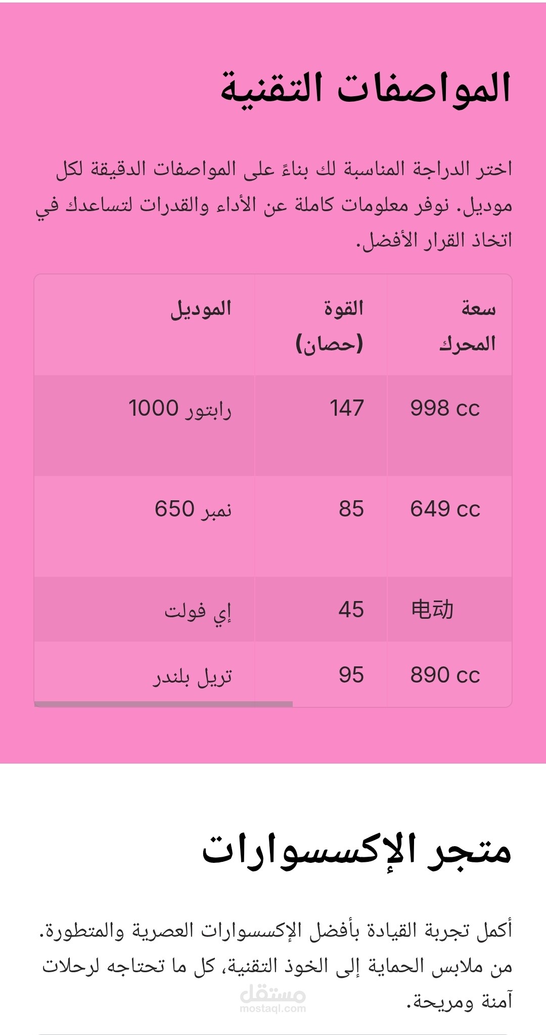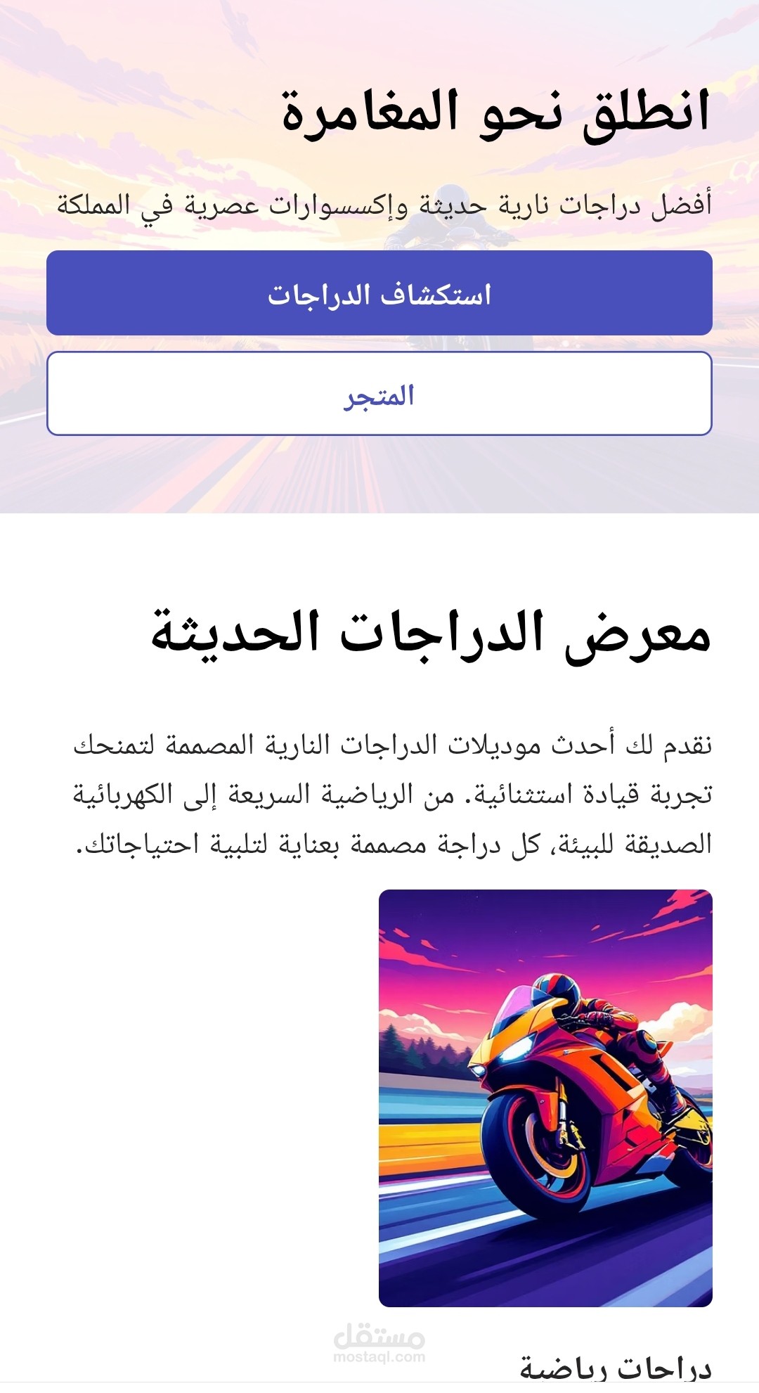 One of my projects involved creating a professional Arabic website for a company specializing in modern motorcycles and accessories. The website should include the following sections: