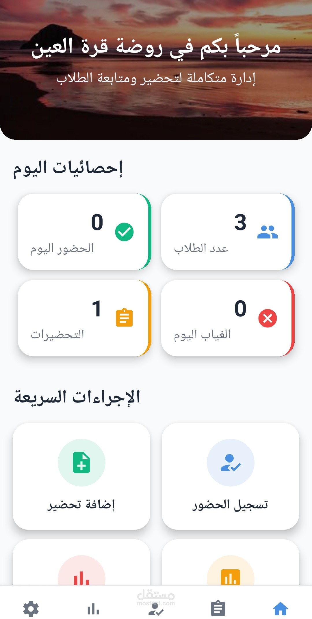 The "Qurrat Al-Ain" project is a comprehensive administrative and organizational application designed to digitize processes within kindergarten institutions. The system aims to transition management from the traditional paper-based approach to a smart system that connects administration, teachers, and parents on a single platform, ensuring data accuracy and ease of access.