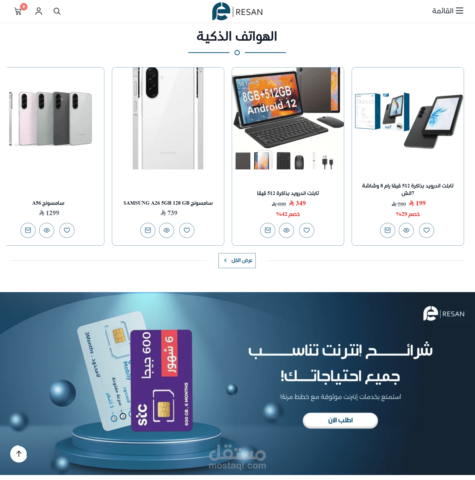 منصة متجر إلكتروني متكاملة تحمل هوية Resan، مصممة لتقديم تجربة تسوق سهلة وسريعة تجمع بين تنوع المنتجات وتنظيم المحتوى بشكل احترافي.