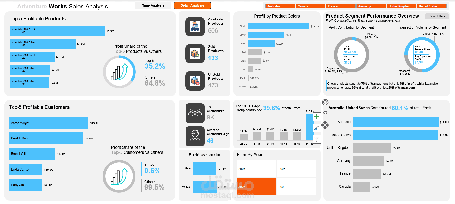 - تحليل الإيرادات حسب العمر والدولة والتوقيت