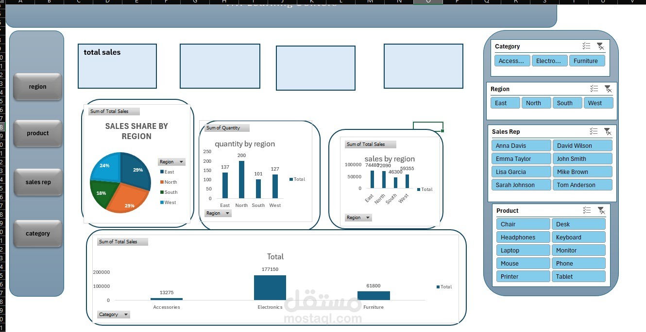 Developed a dynamic dashboard using PivotCharts to visualize sales distribution.