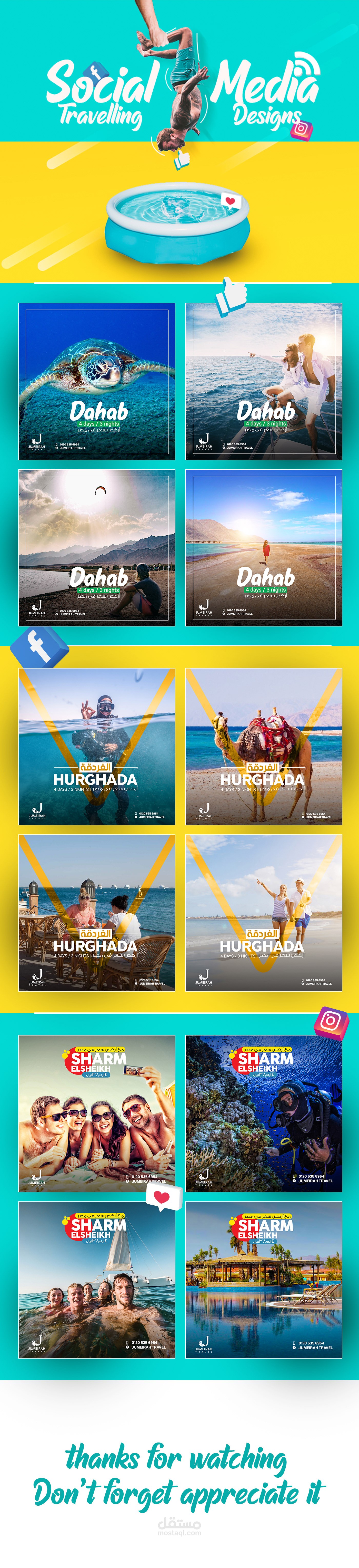 بعض تصميمات السوشيل ميديا لشركة سياحة للعرضها رحالاتها في فصل الصيف .