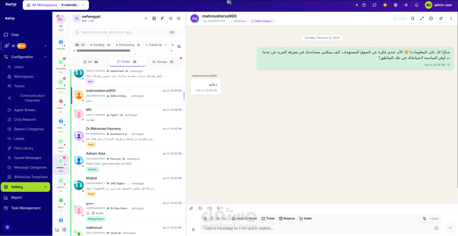 Awfar Inbox is a communication management system designed to centralize and streamline customer conversations across multiple digital channels. The platform enables businesses to manage messages, automate responses, and collaborate internally to provide faster and more efficient customer support.