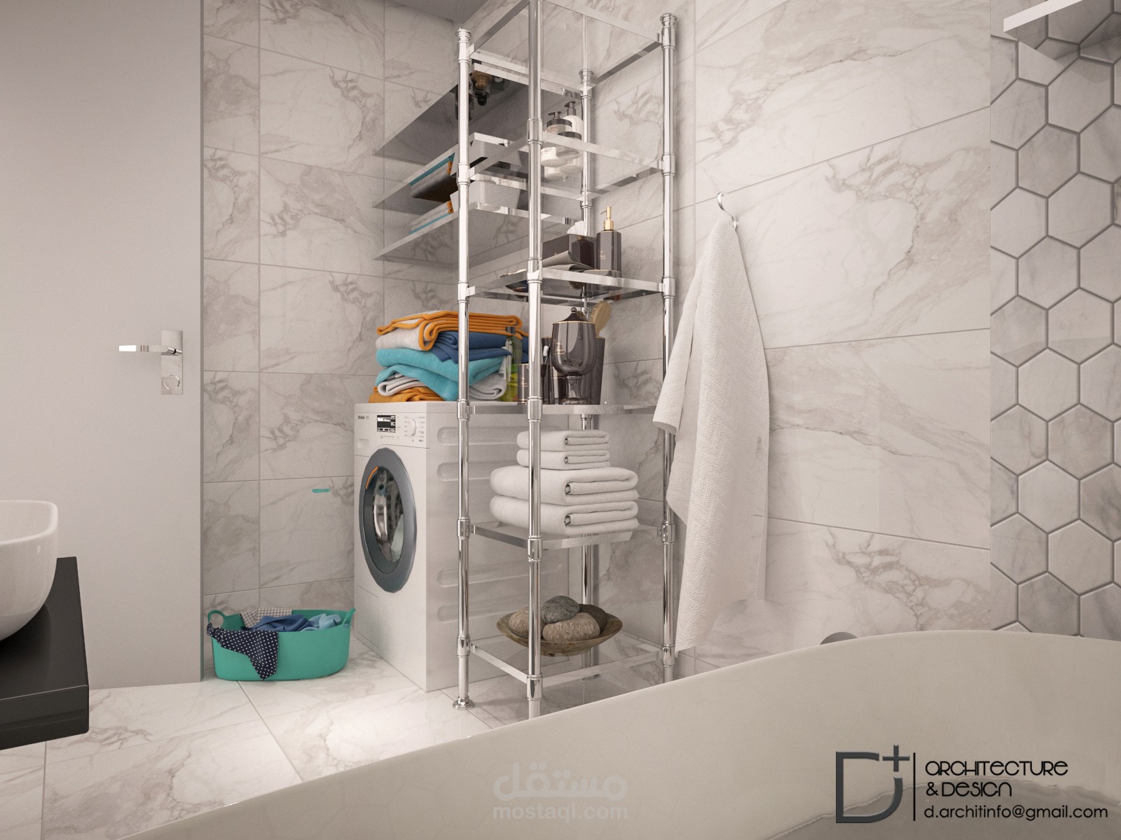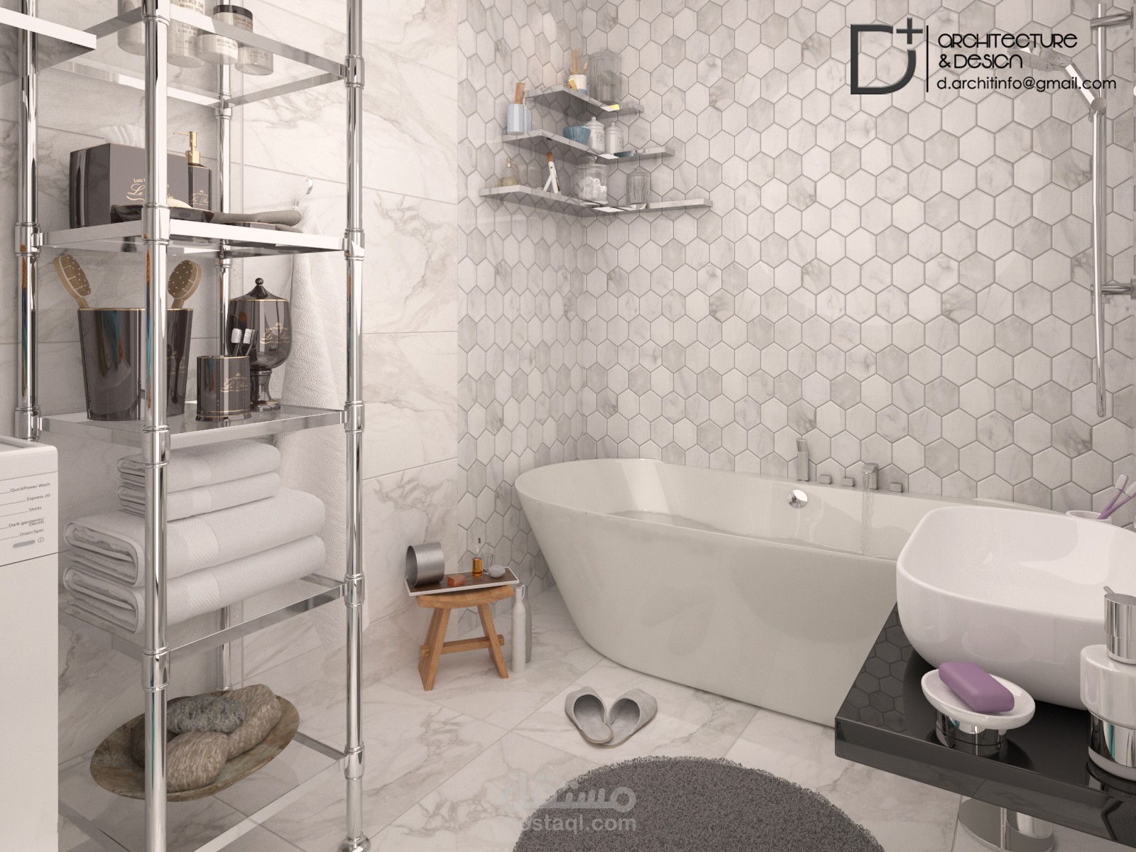 تصميم واخراج لحمام بستايل أبيضـ،