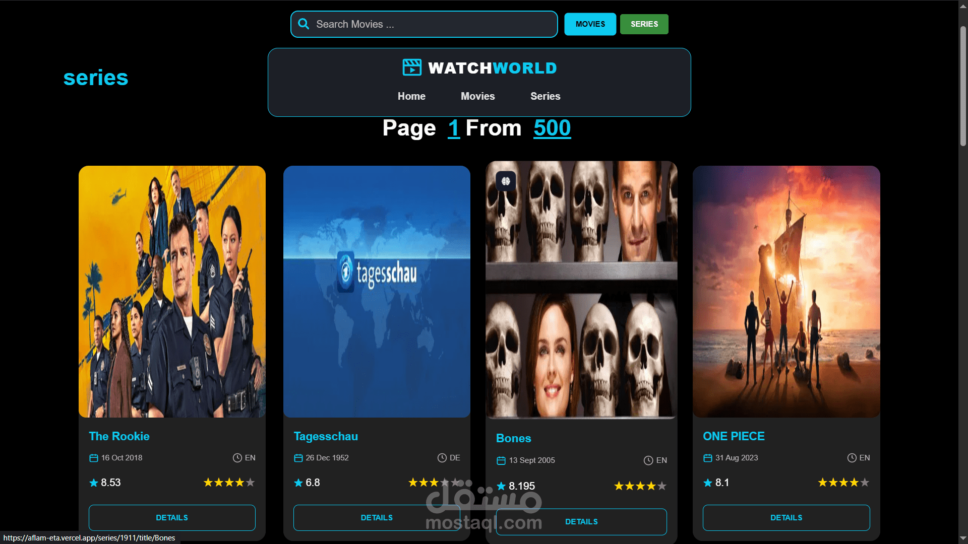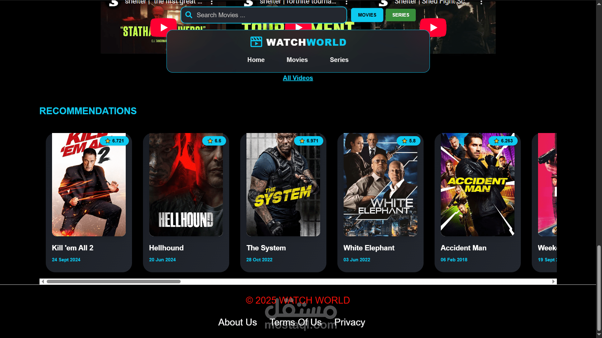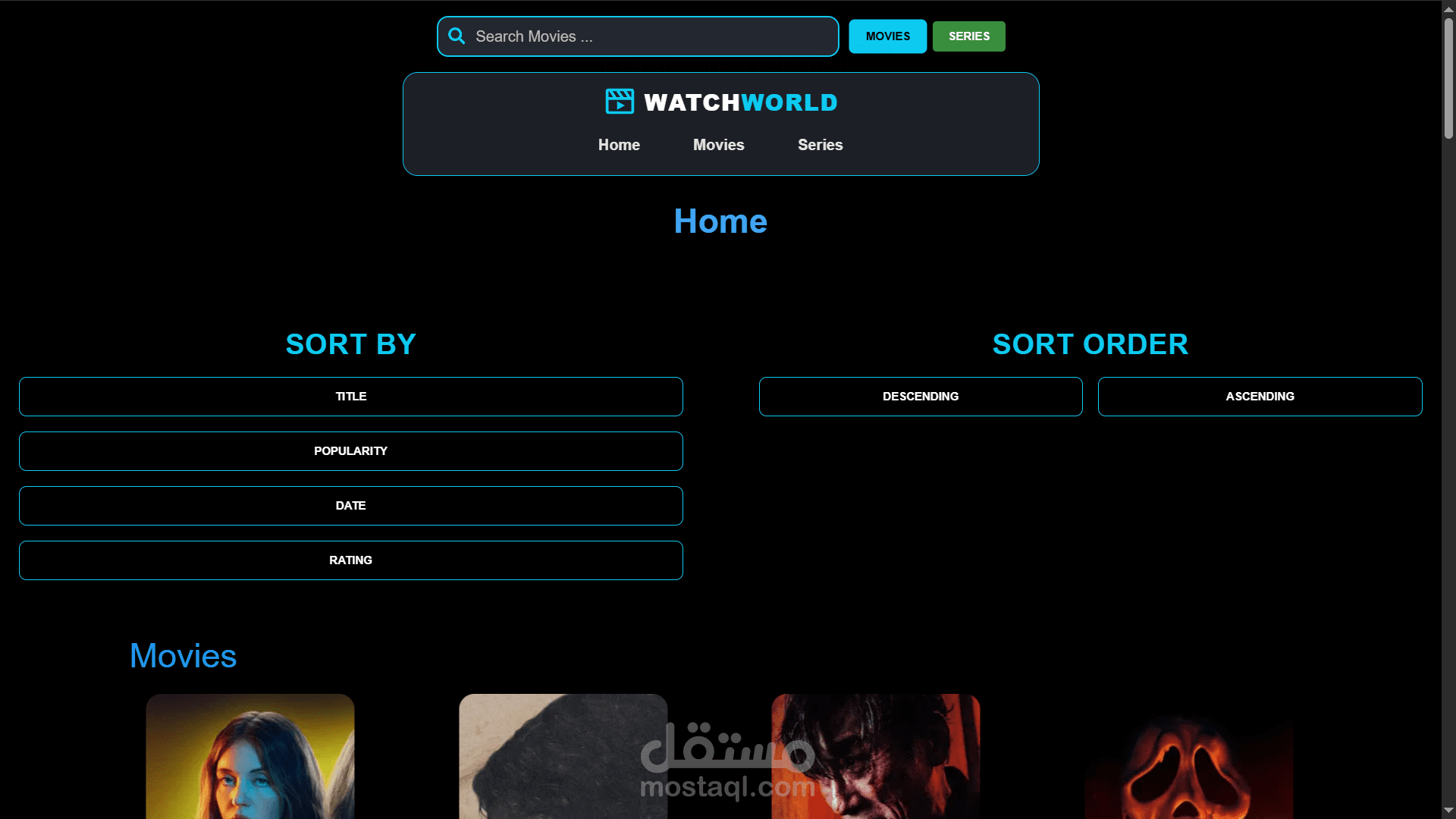 اشتغلت على مشروع موقع لعرض الأفلام والمسلسلات، صممت فيه واجهة سهلة وجذابة باستخدام React مع تنظيم الكود على شكل Components. المشروع بيعرض قائمة بالأفلام والتفاصيل الخاصة بكل فيلم، واهتميت إنه يكون سريع وResponsive ويشتغل كويس على الموبايل والكمبيوتر.