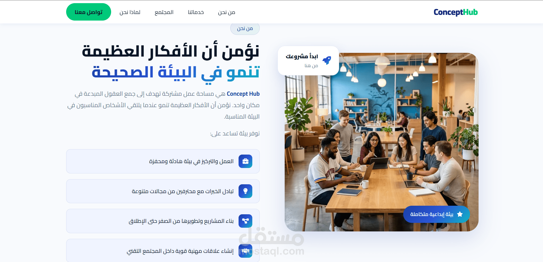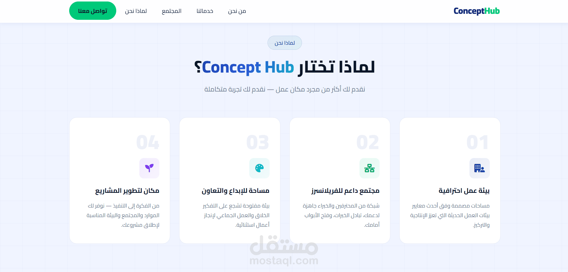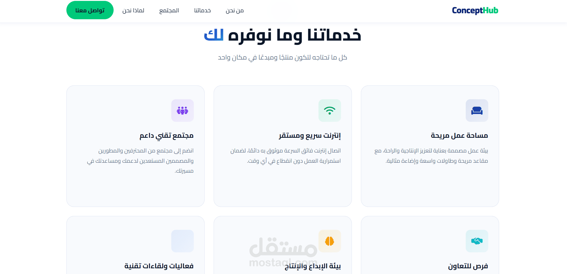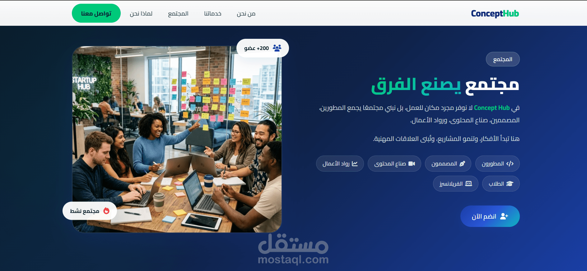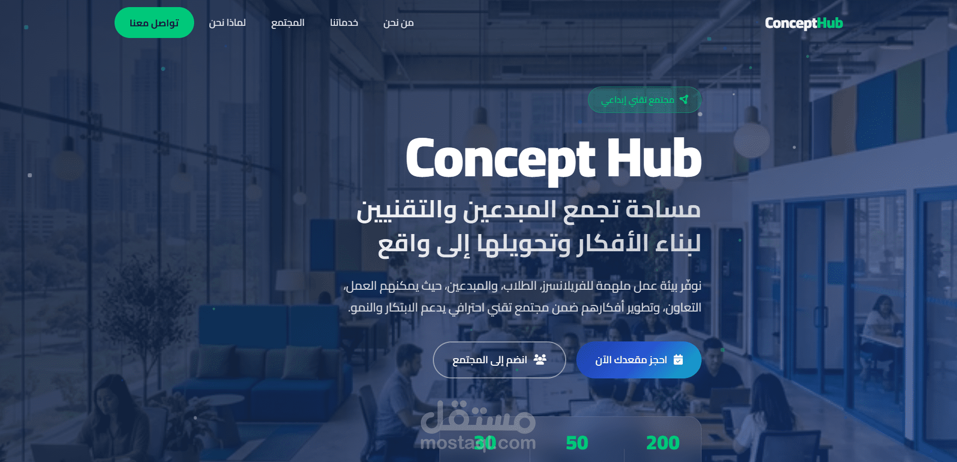 قمت بتصميم وتطوير موقع ويب احترافي لمنصة Concept Hub، وهي مساحة عمل ومجتمع تقني يهدف إلى جمع المبرمجين والمبدعين والمهتمين بالتكنولوجيا في بيئة تعاونية واحدة.