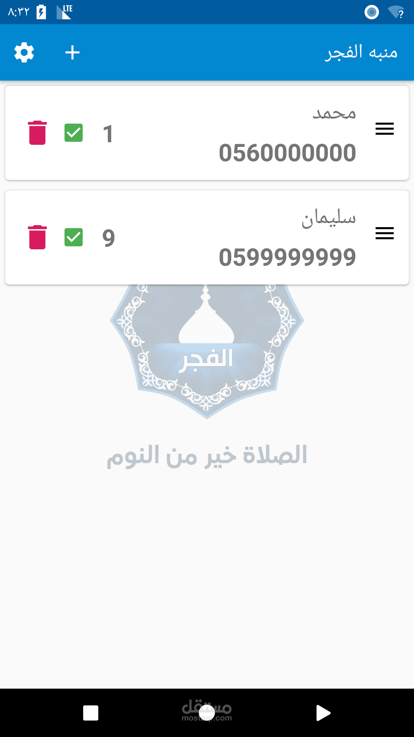 يتيح لك هذا التطبيق إمكانية جدولة مكالمات للأرقام التي تحددها للتنبيه لصلاة الفجر