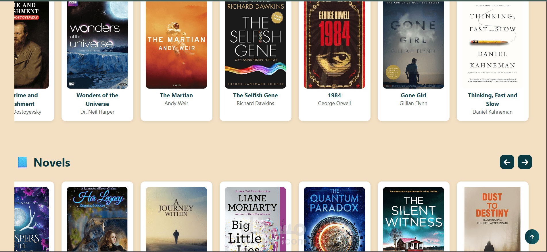 قمت بتطوير تطبيق ويب تفاعلي لإدارة بيانات الكتب باستخدام HTML وCSS وJavaScript، مع التركيز على الأداء وسهولة الاستخدام.