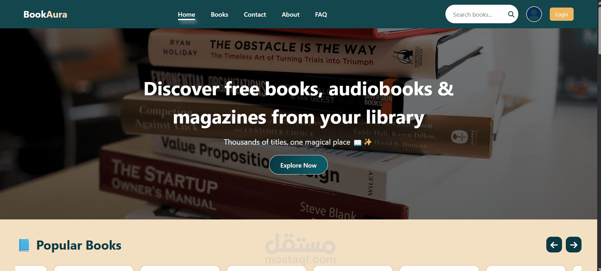 تصميم وبناء واجهة مستخدم حديثة (UI) تتيح للمستخدم إضافة الكتب، تعديل بياناتها، حذفها، وعرضها بطريقة منظمة وسلسة.