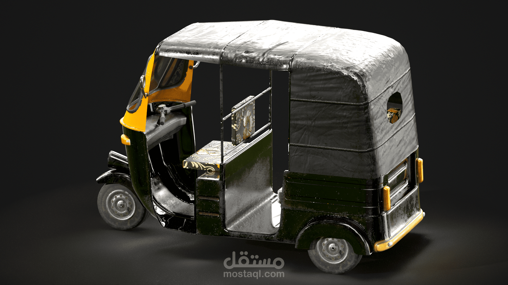 A highly detailed and realistic Egyptian Tuk Tuk 3D model, inspired by authentic local street vehicles commonly found in urban and rural environments.