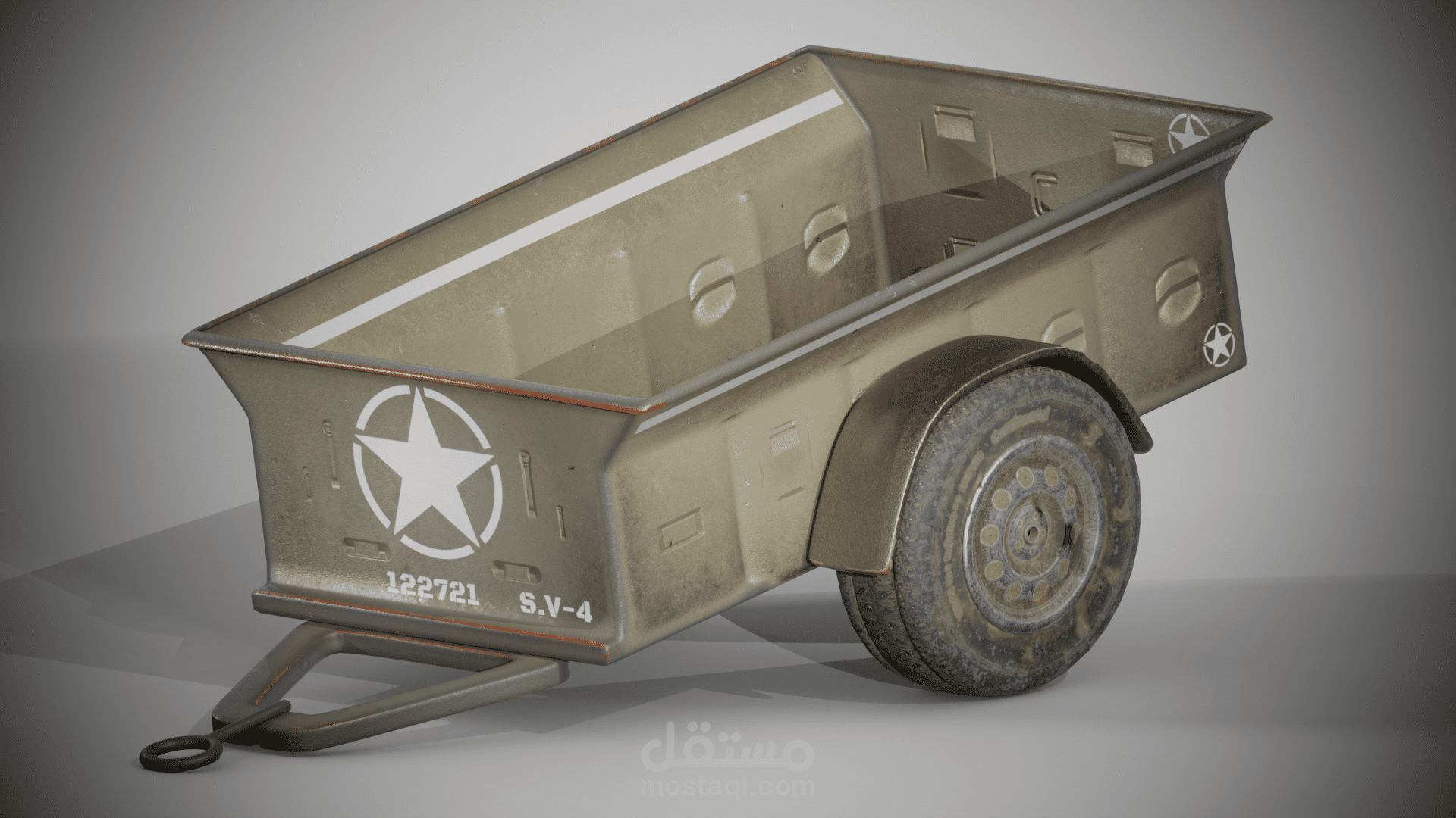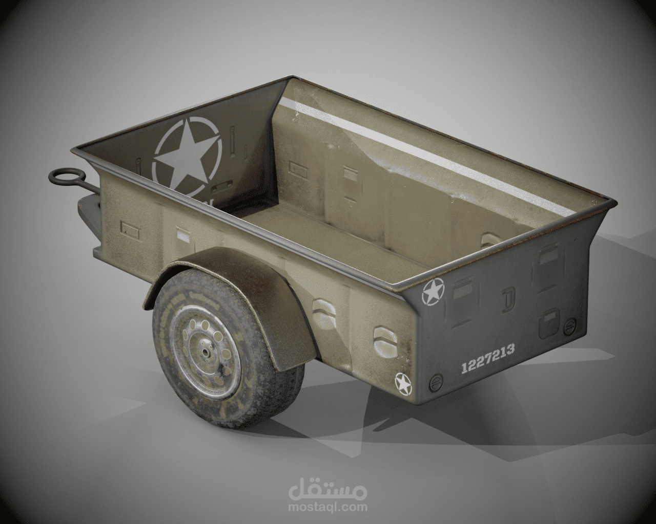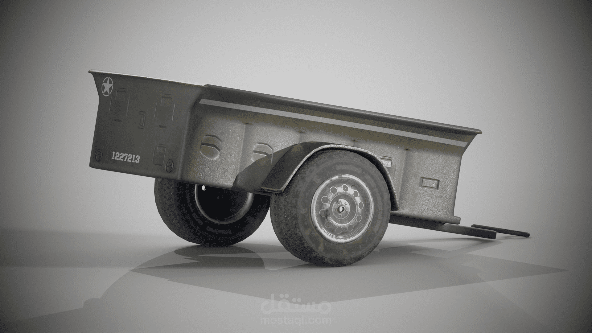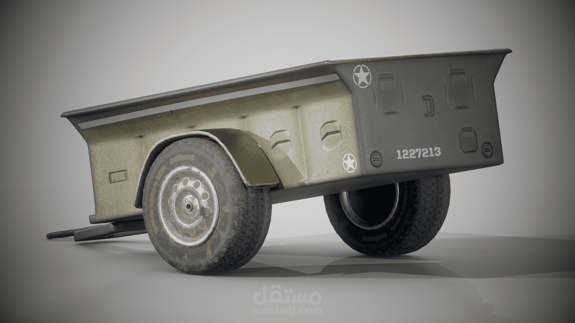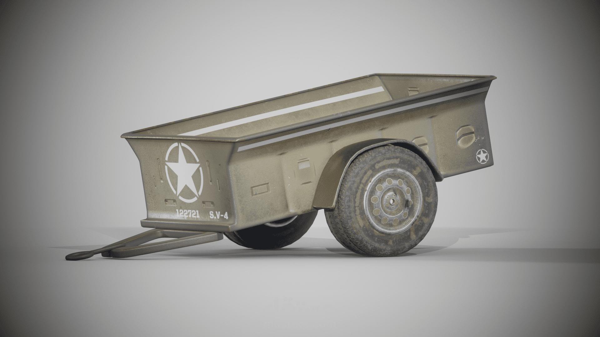 A realistic military-style cargo trailer with weathered details and clean topology, perfect for cinematic shots, games, and environment storytelling.