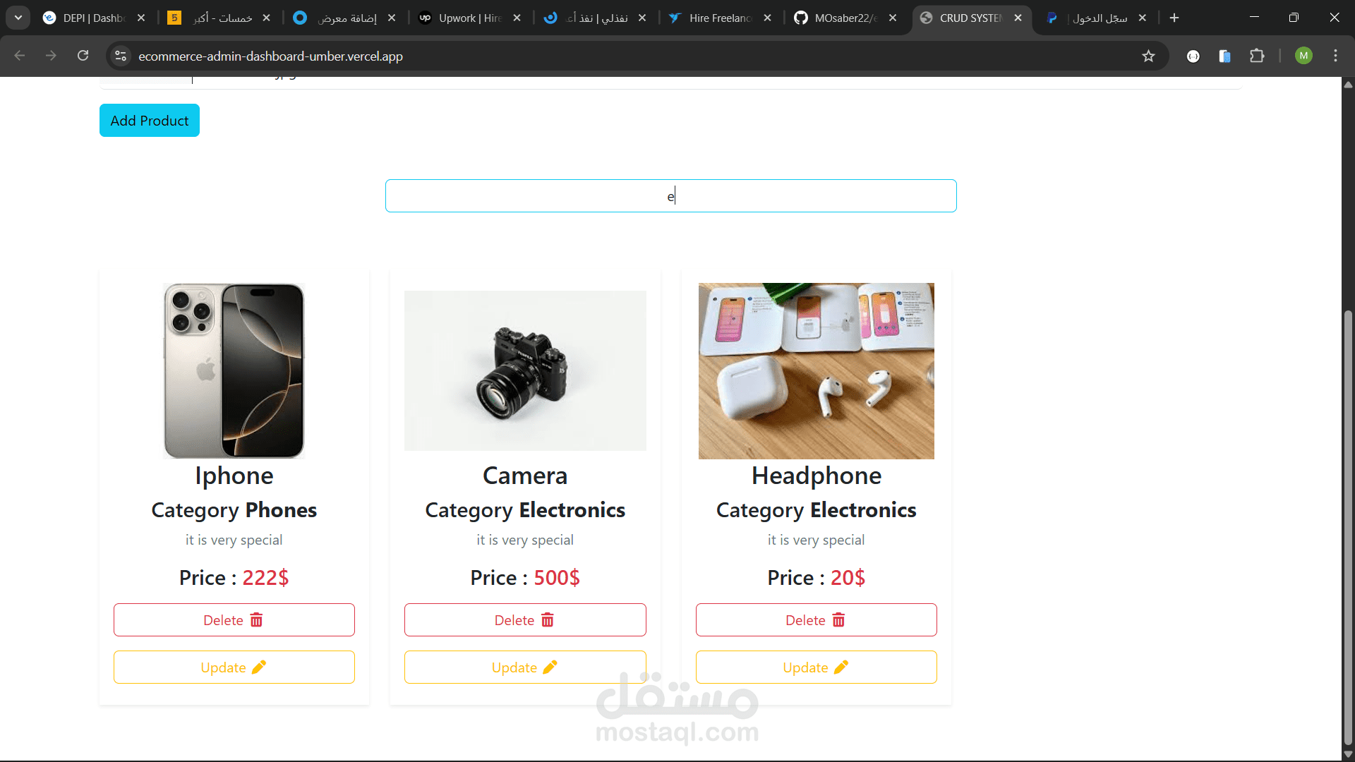 لوحة تحكم إدارة التجارة الإلكترونية | نظام CRUD باستخدام جافا سكريبت فقط