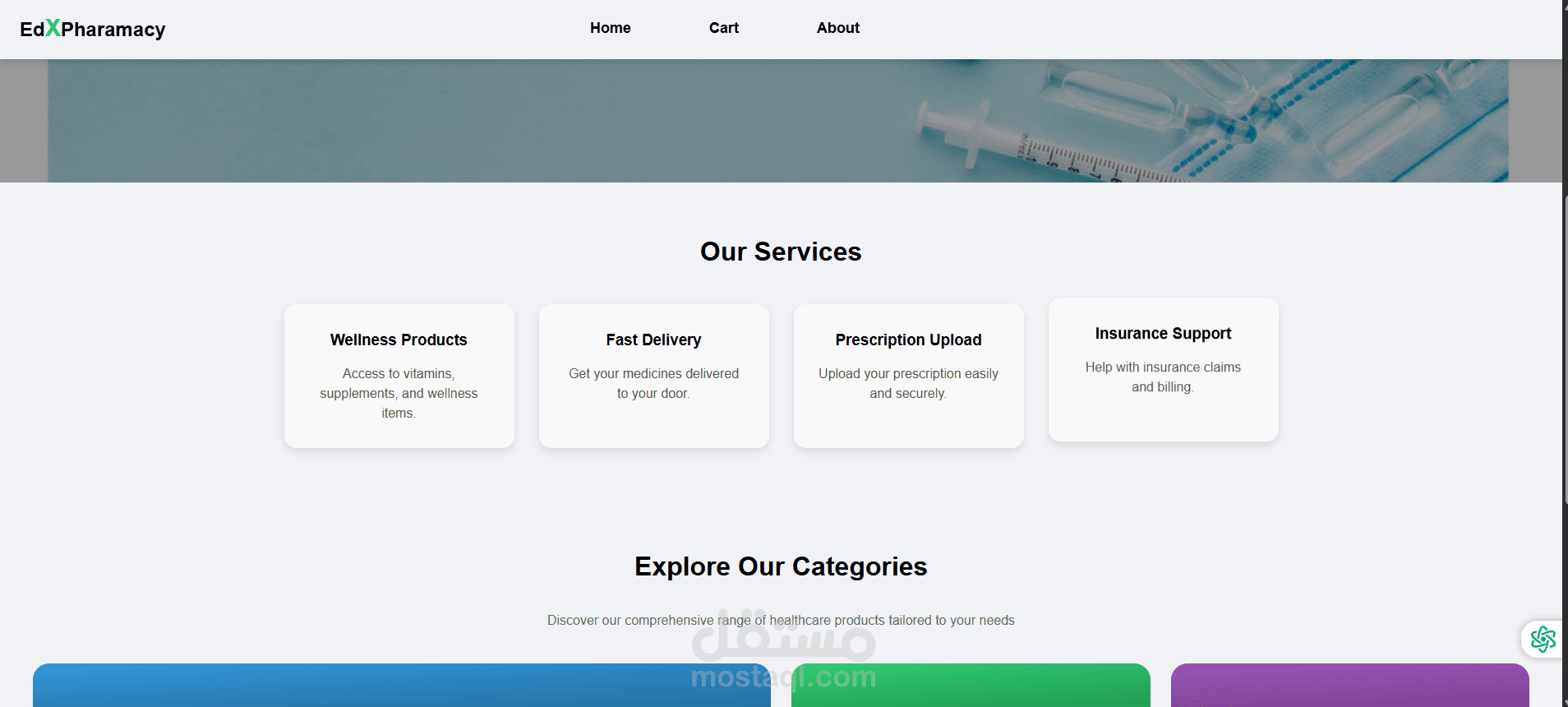 يهدف الموقع إلى توفير تجربة شراء مريحة وآمنة للمستخدم، مع تصميم واجهة حديثة وسهلة الاستخدام، تضمن الوصول السريع للمنتجات والخدمات الصحية. كما يدعم الموقع التصفح من مختلف الأجهزة (موبايل – تابلت – كمبيوتر) بفضل التصميم المتجاوب.