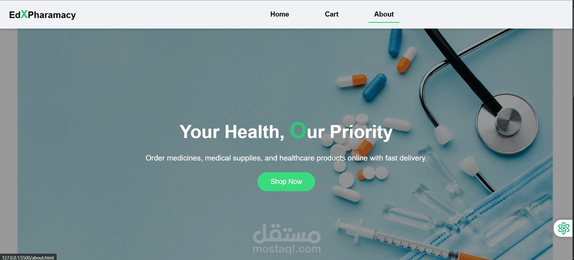 هو موقع تجارة إلكترونية متخصص في بيع الأدوية والمستلزمات الطبية ومنتجات العناية الصحية عبر الإنترنت، حيث يتيح للمستخدمين تصفح المنتجات بسهولة، والبحث عن الأدوية، وإضافتها إلى سلة المشتريات، ثم إتمام عملية الشراء بشكل بسيط وسريع.