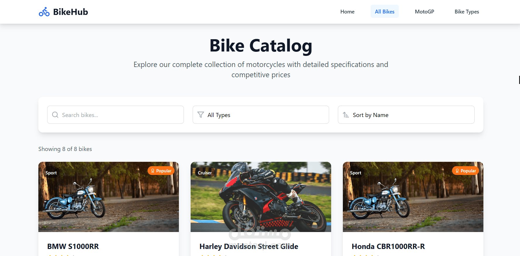 تم تطوير تطبيق ويب حديث لعرض كتالوج الدراجات النارية باستخدام React و Tailwind CSS، مع تصميم متجاوب بالكامل يناسب جميع الأجهزة. يهدف التطبيق إلى تقديم تجربة مستخدم سلسة وجذابة لعشاق الدراجات.