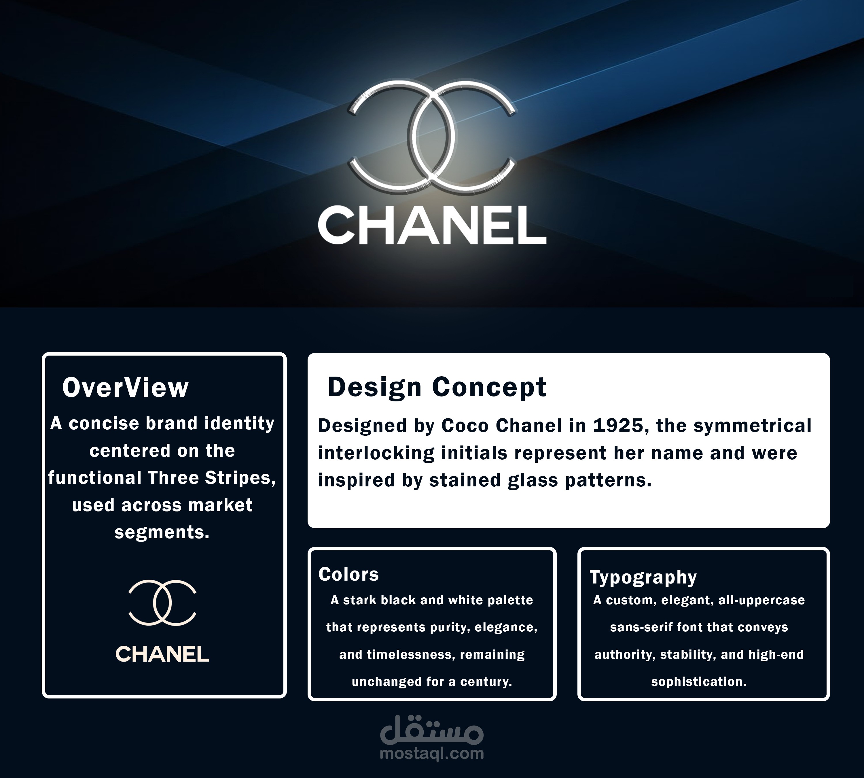 التحليل الهندسي: توضيح النسب والتوازن في الشعارات الأيقونية (مثل تداخل حلقات شانيل أو زوايا خطوط أديداس).
