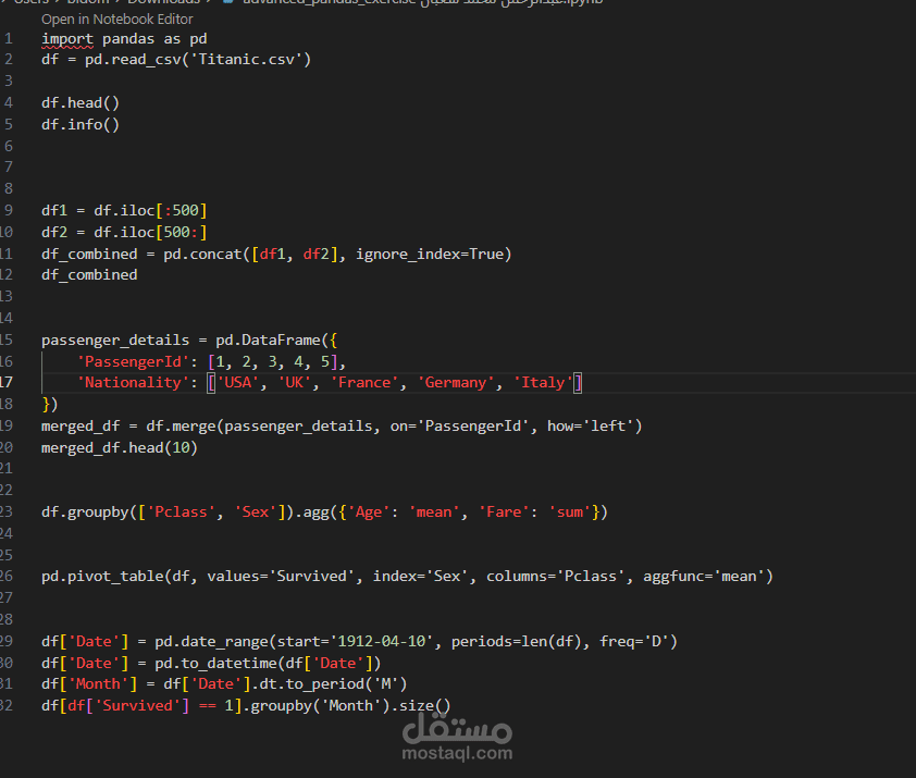 Worked with Python and Pandas for data analysis and preprocessing. Cleaned and transformed datasets, handled missing values, and performed exploratory data analysis (EDA). Built data pipelines and generated insights using data manipulation, filtering, and aggregation techniques. Visualized data and created reports to support decision-making.