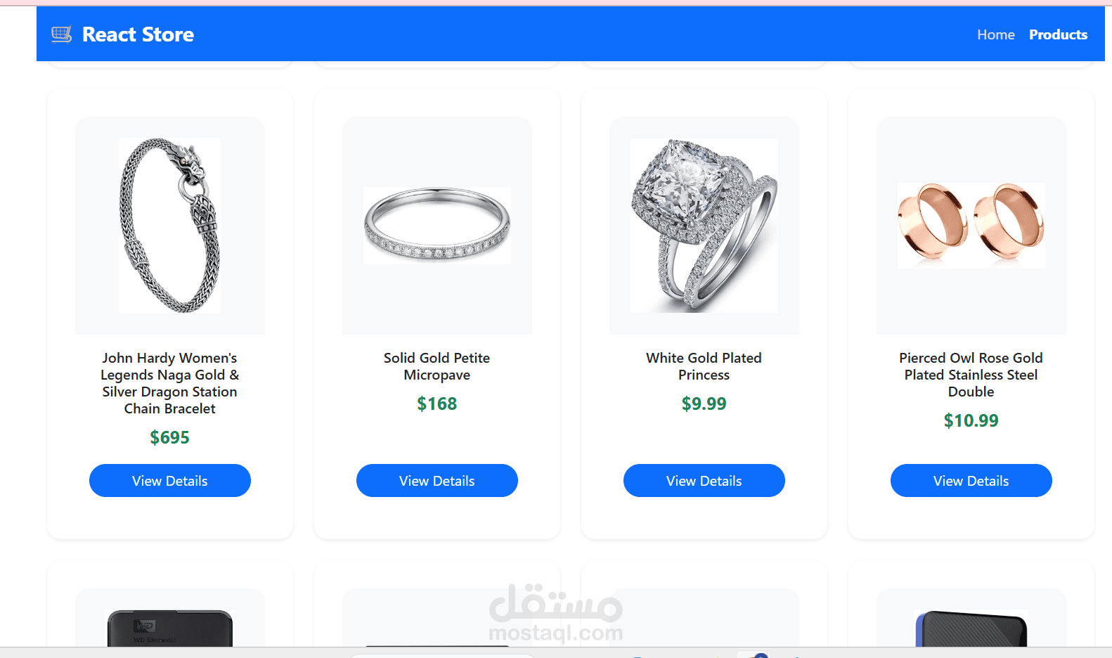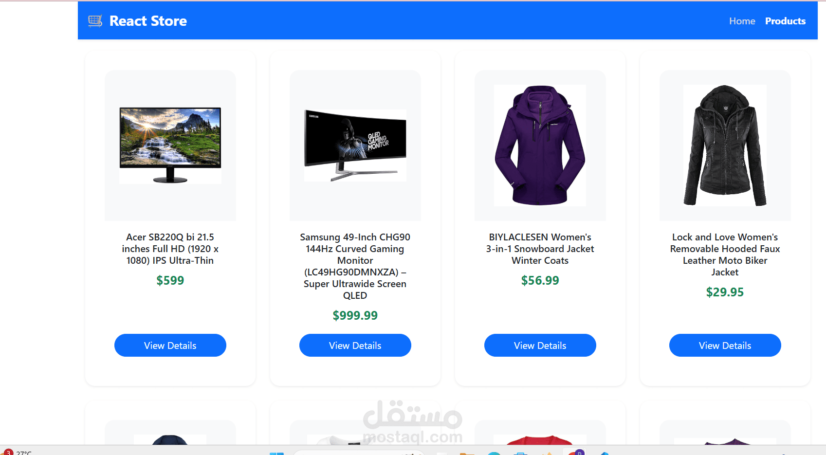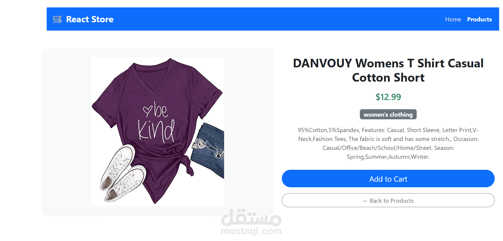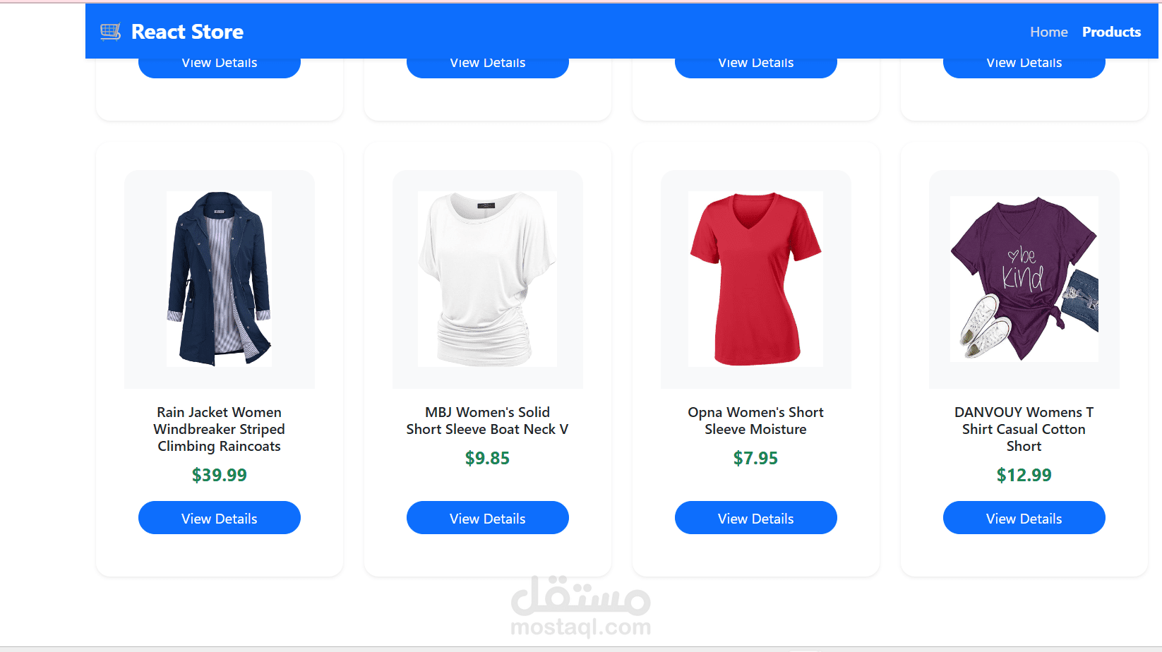 Integrated with the Fake Store API to dynamically fetch and display real products
