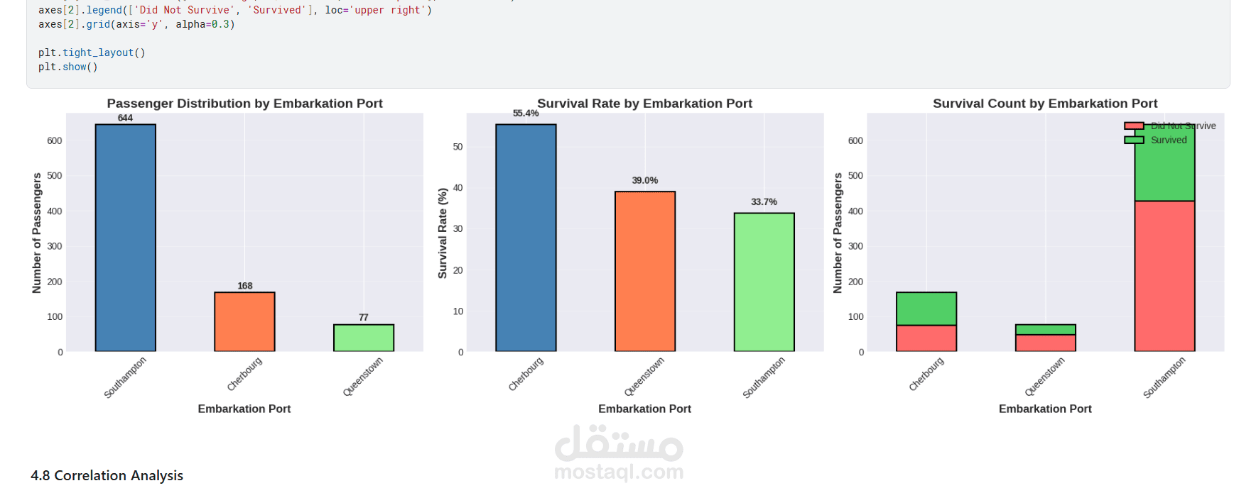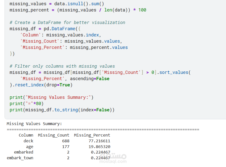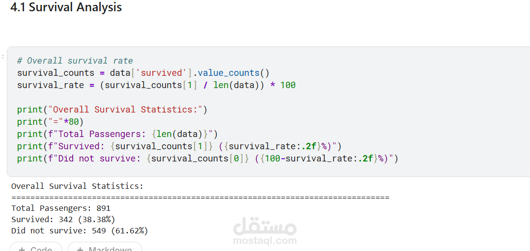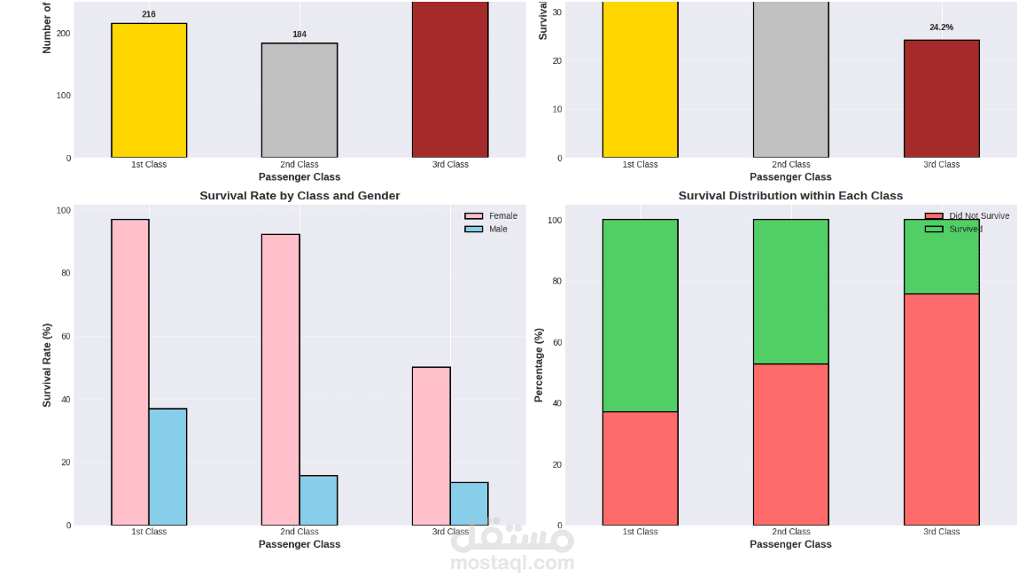 يقدم هذا المشروع تحليلاً كاملاً ومتكاملاً للبيانات للتنبؤ بنجاة ركاب تيتانيك باستخدام تقنيات تعلم الآلة. يبدأ المشروع باستكشاف البيانات وتحليلها (EDA) لاكتشاف الأنماط المؤثرة مثل الجنس، درجة السفر، العمر، حجم العائلة، وقيمة التذكرة. تمت معالجة القيم المفقودة بعناية، وهندسة ميزات جديدة (مثل حجم العائلة، السعر لكل فرد، والفئات العمرية) لتحسين أداء النماذج. بعد ترميز المتغيرات الفئوية وتقسيم البيانات، تم تدريب ثلاثة نماذج: الانحدار اللوجستي، الغابة العشوائية، و XGBoost، ثم مقارنتها باستخدام مقاييس الدقة، الاستدعاء، الدقة، F1‑score، و ROC‑AUC. يوضح التحليل أهمية الميزات ويقدم رؤى قابلة للتطبيق، مع تحقيق أداء عالٍ يتجاوز 80% من الدقة. المشروع عبارة عن قالب متكامل وقابل لإعادة الاستخدام لمهام التصنيف الثنائي.