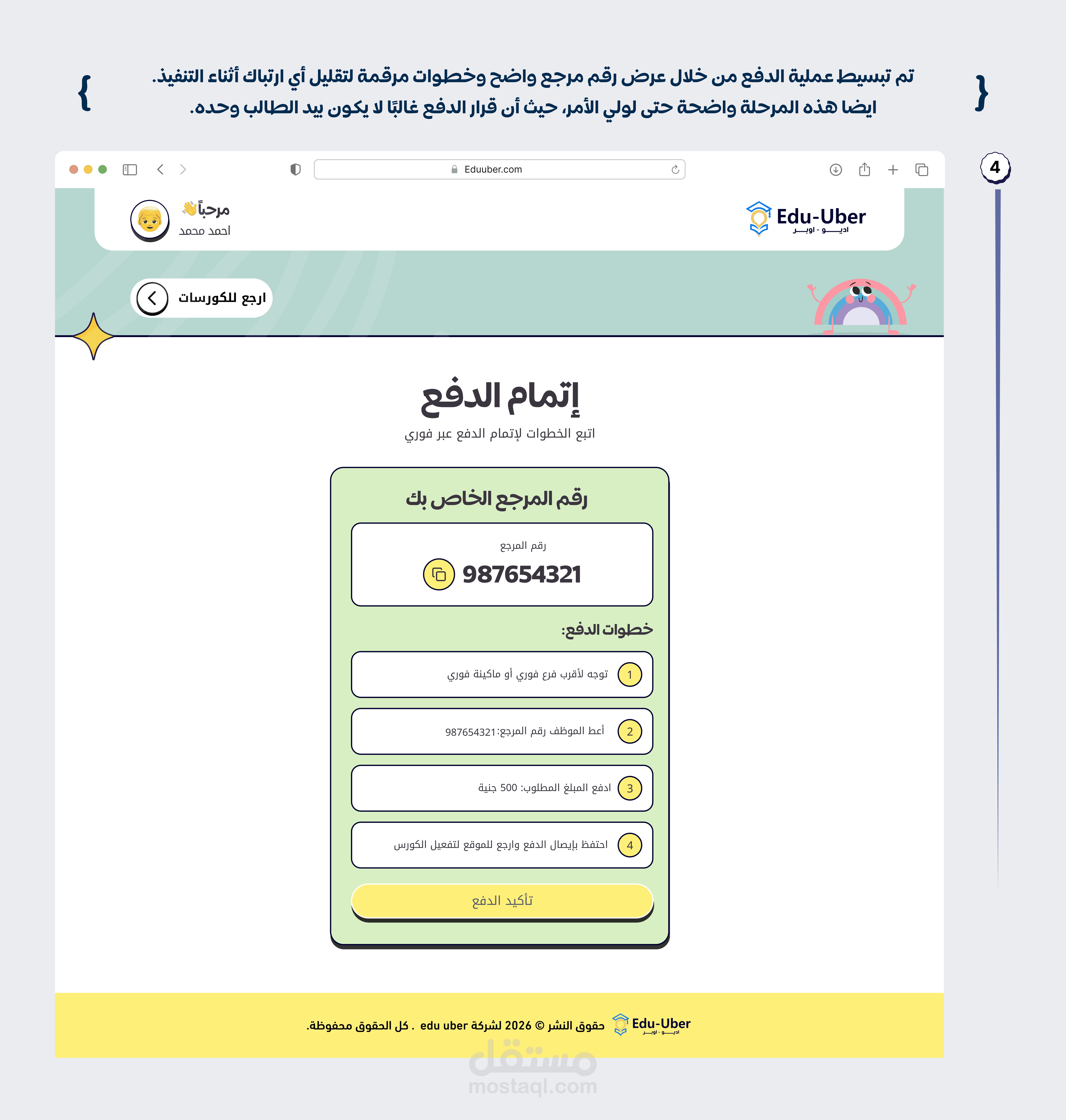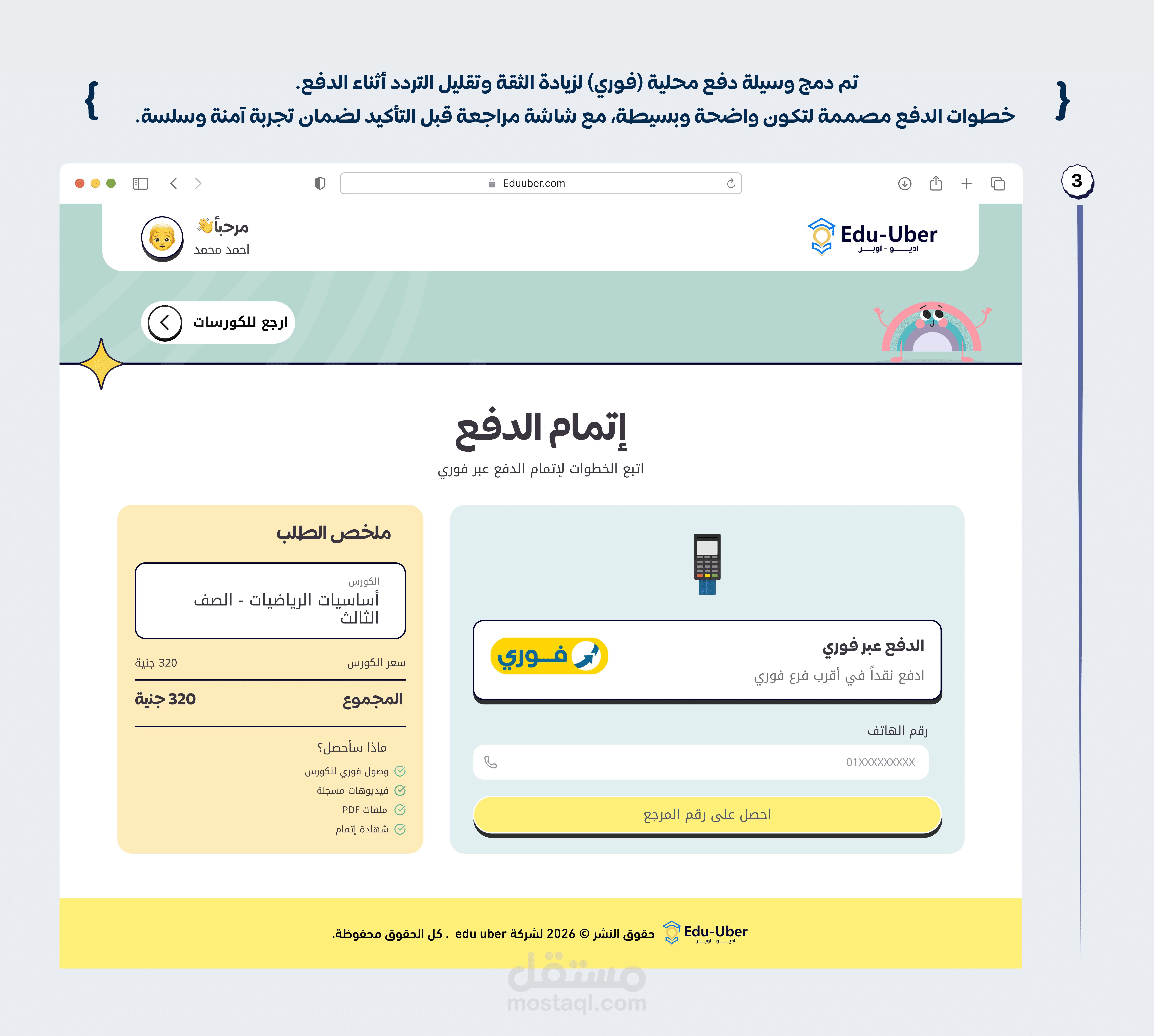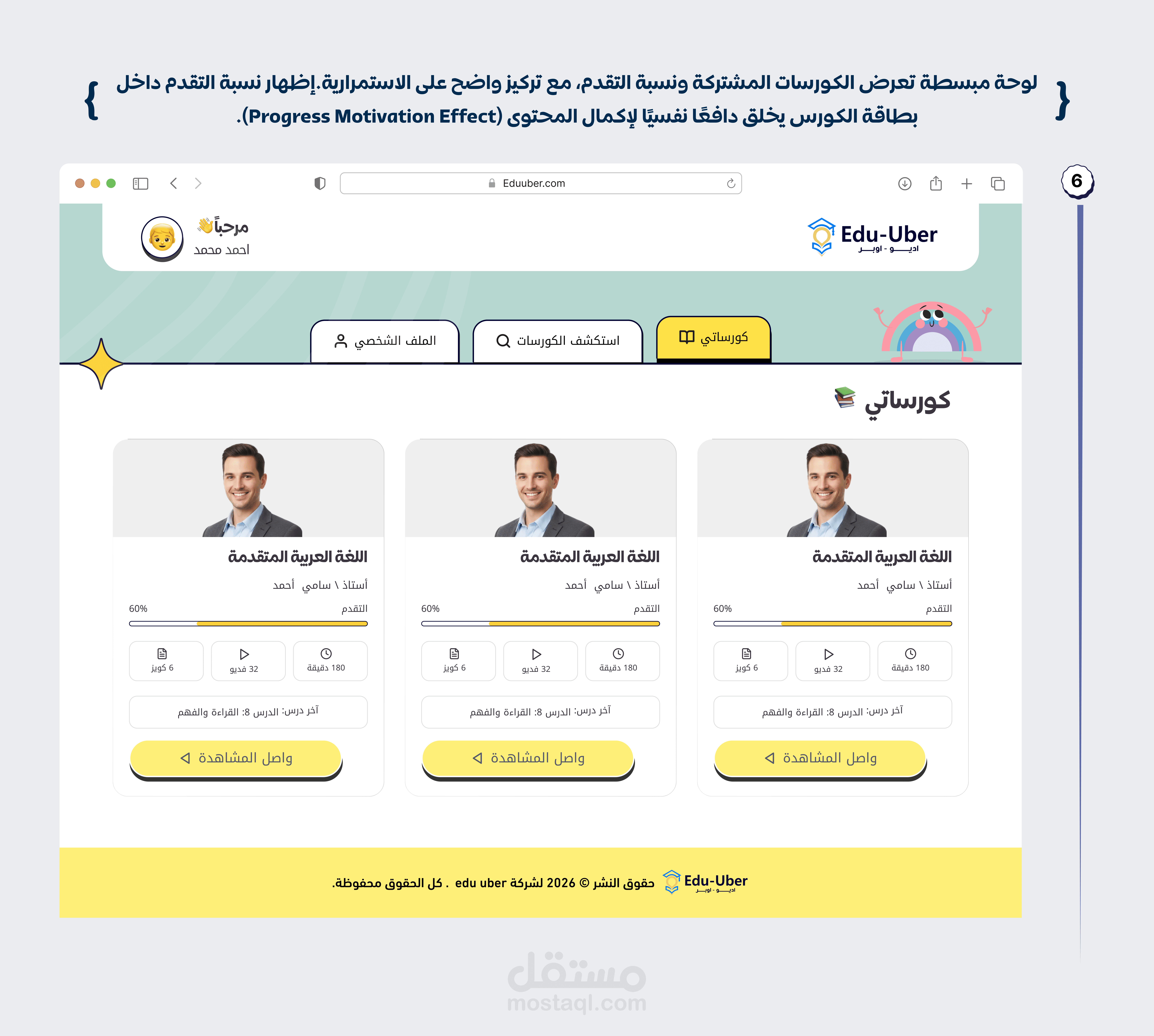 Edu-Uber is an EdTech platform designed for primary school students to create an engaging and motivating learning experience. The platform allows students to explore courses and teachers before registration, reducing friction and increasing trust. It includes a student dashboard for tracking progress, interactive quizzes with instant feedback, and a parent monitoring system to follow the child’s performance. A local payment method (Fawry) was integrated to make the subscription process simple and familiar for users