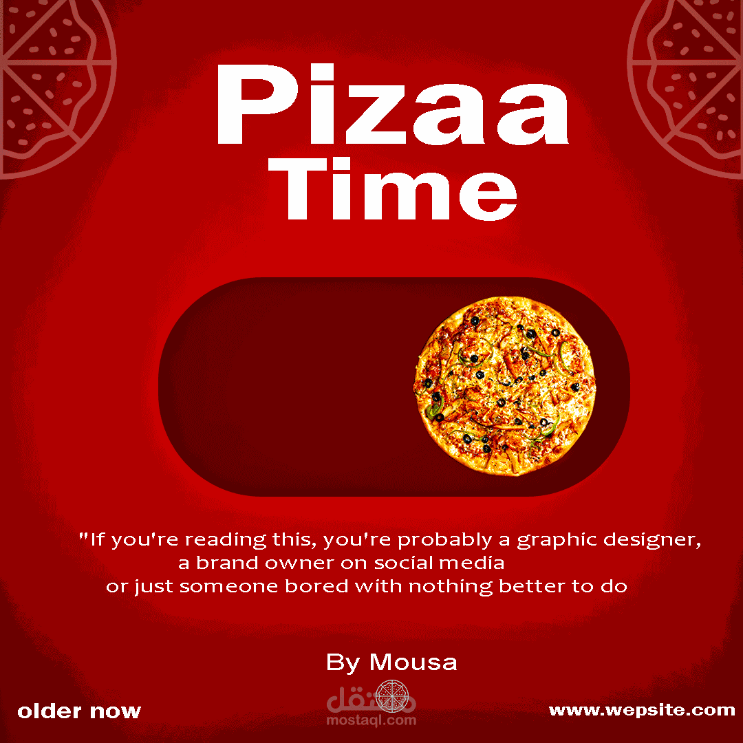 قمت بتصميم رسومات جرافيك تسويقية لمطعم Pizza Time، مع التركيز على إبراز الطعام بطريقة جذابة وملفتة للنظر، واستخدام ألوان حيوية وأسلوب حديث يشد الانتباه. التصميمات مناسبة للاستخدام على السوشيال ميديا والإعلانات الرقمية، مع الحفاظ على الهوية البصرية للعلامة التجارية.