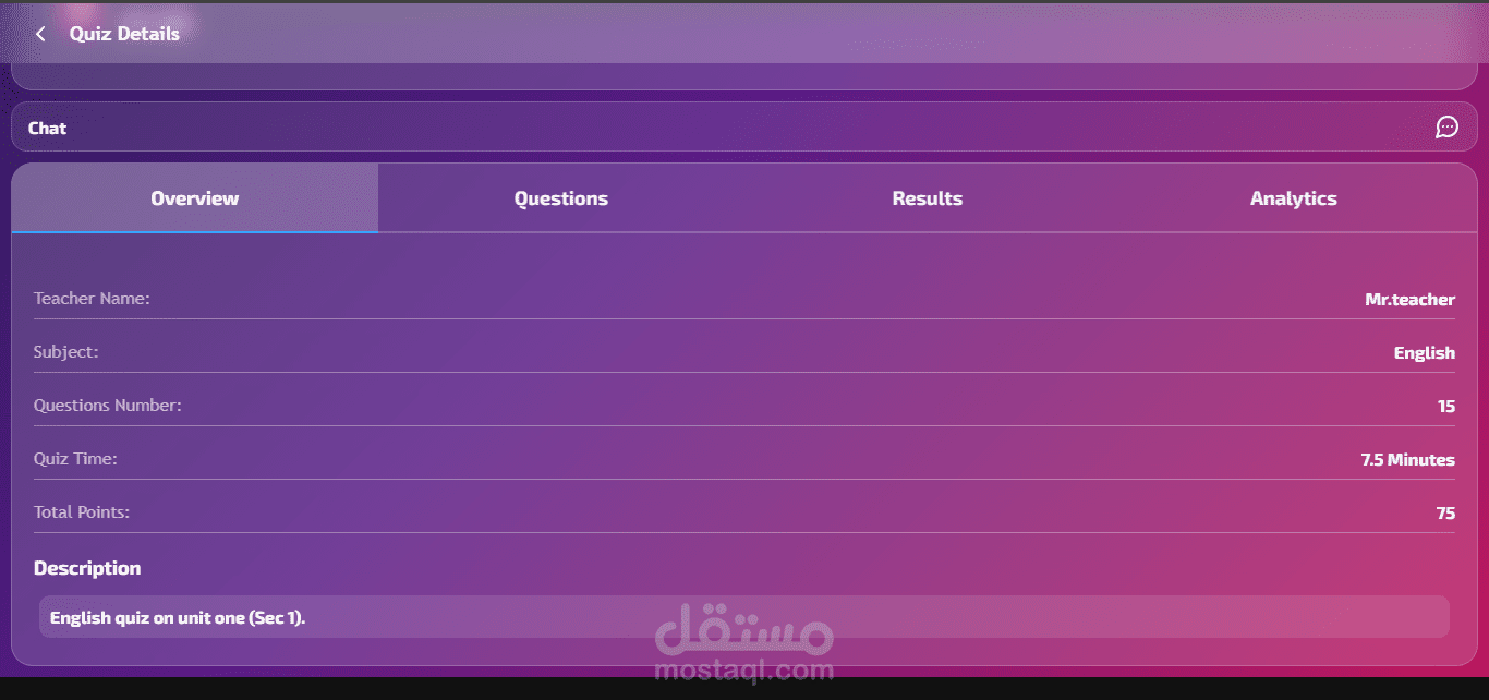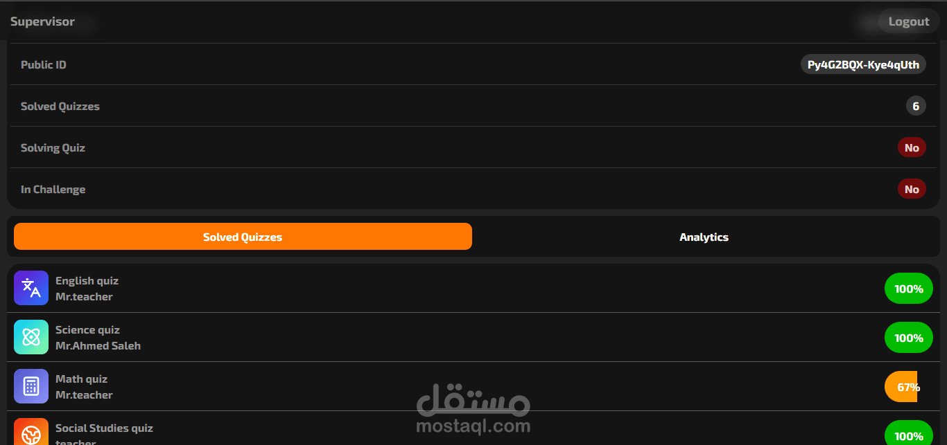 ستخدم الموقع الإلكتروني لإنشاء الاختبارات (حساب المعلم فقط) ويقوم الطلاب بحلها (حساب الطالب فقط). يمكن للطالب مراجعة إجاباته بعد الانتهاء من الاختبار، ويمكن للمعلم رؤية من حلّ اختباره وإجاباته، كما يمكن للمشرف متابعة تقدم طالبه والاطلاع على نتائجه. بعد أن يحلّ الطالب الاختبار، يمكنه التواصل مع الطلاب الذين حلّوا الاختبار نفسه ومع المعلم عبر صفحة دردشة عامة.