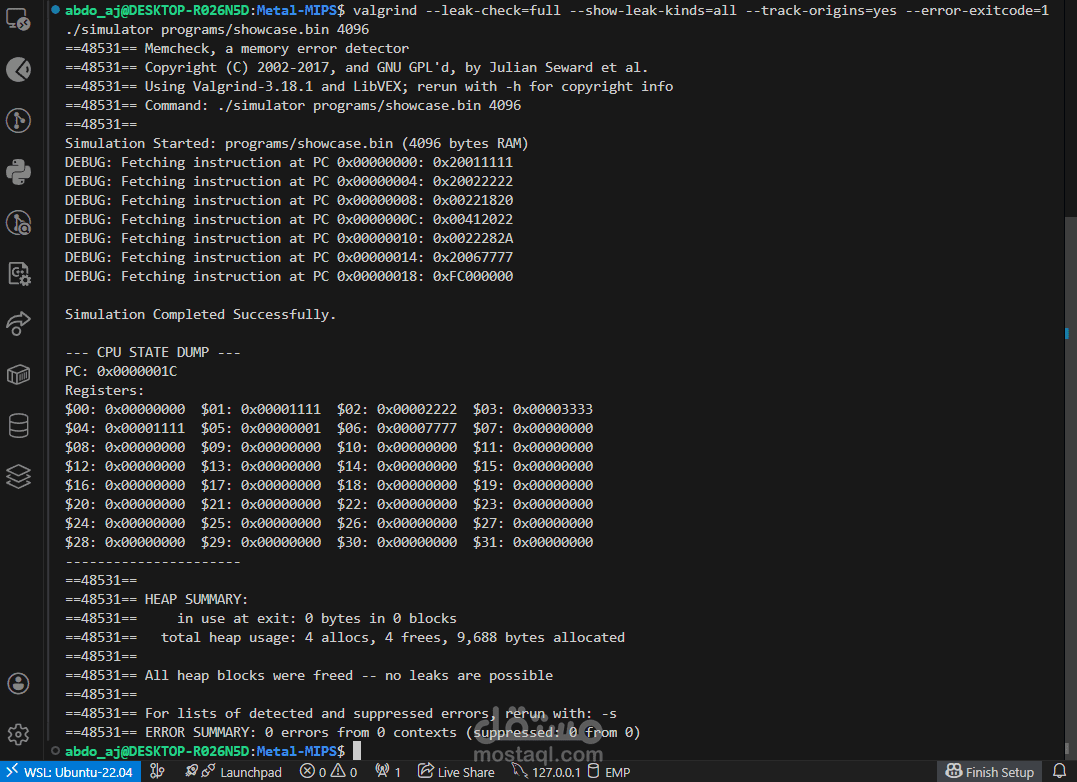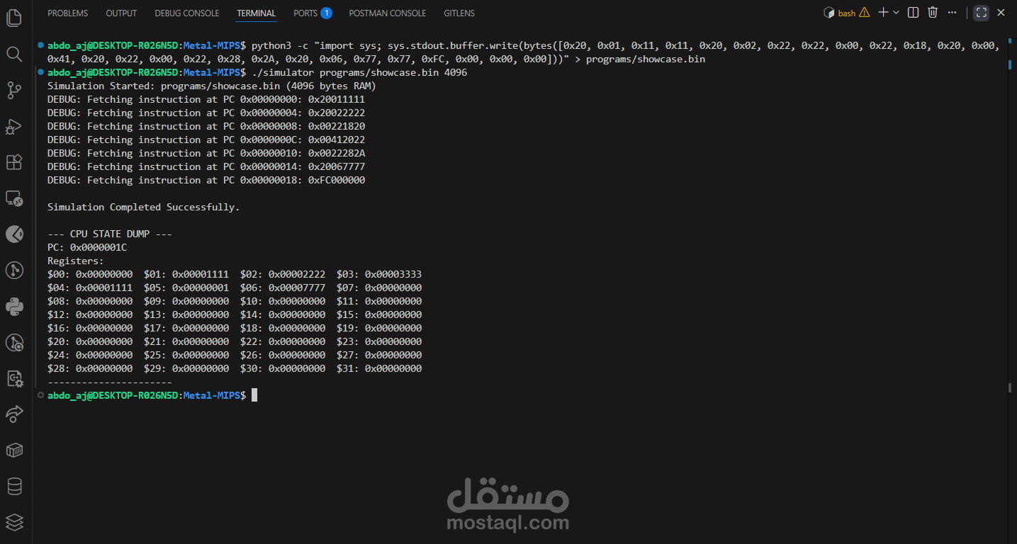 قمت ببناء محاكي متكامل لمعمارية MIPS البرمجية باستخدام لغة C الخالصة (Pure C). التحدي الحقيقي في هذا المشروع لم يكن مجرد كتابة كود، بل في هندسة معمارية مرنة تسمح بإضافة تعليمات جديدة (Instructions) دون الحاجة لتعديل محرك المحاكي الأساسي.