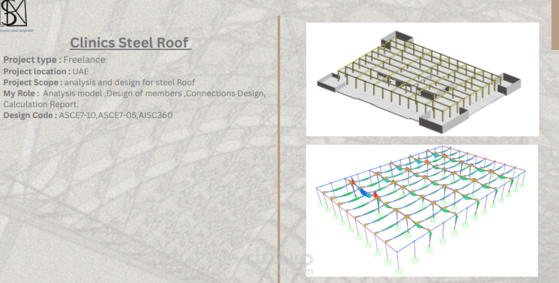 تصميم انشائى لسقف معدنى بالامارات وعمل النوتة الحسابية وتصميم الوصلات