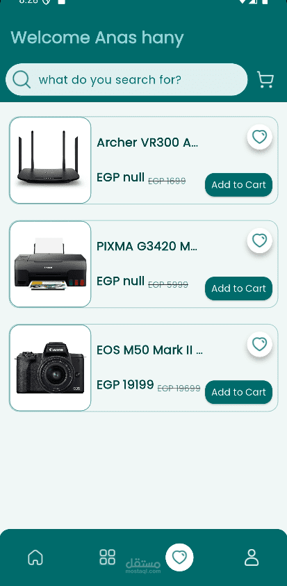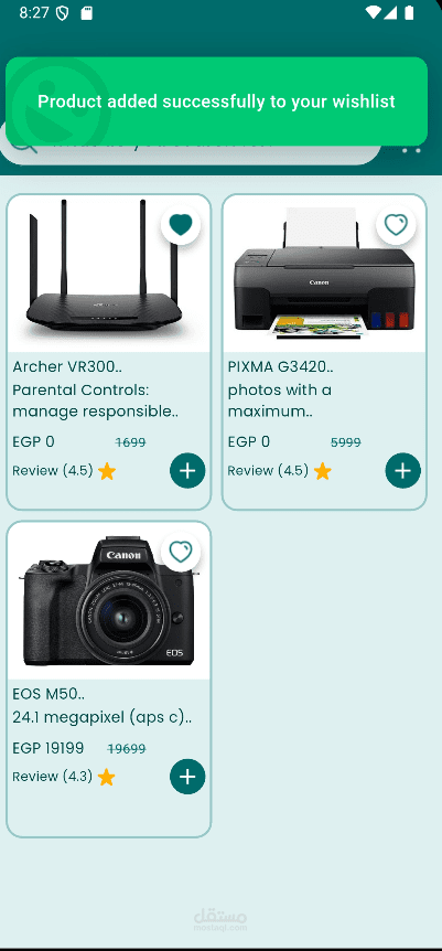 إمكانية إضافة المنتجات إلى المفضلة.