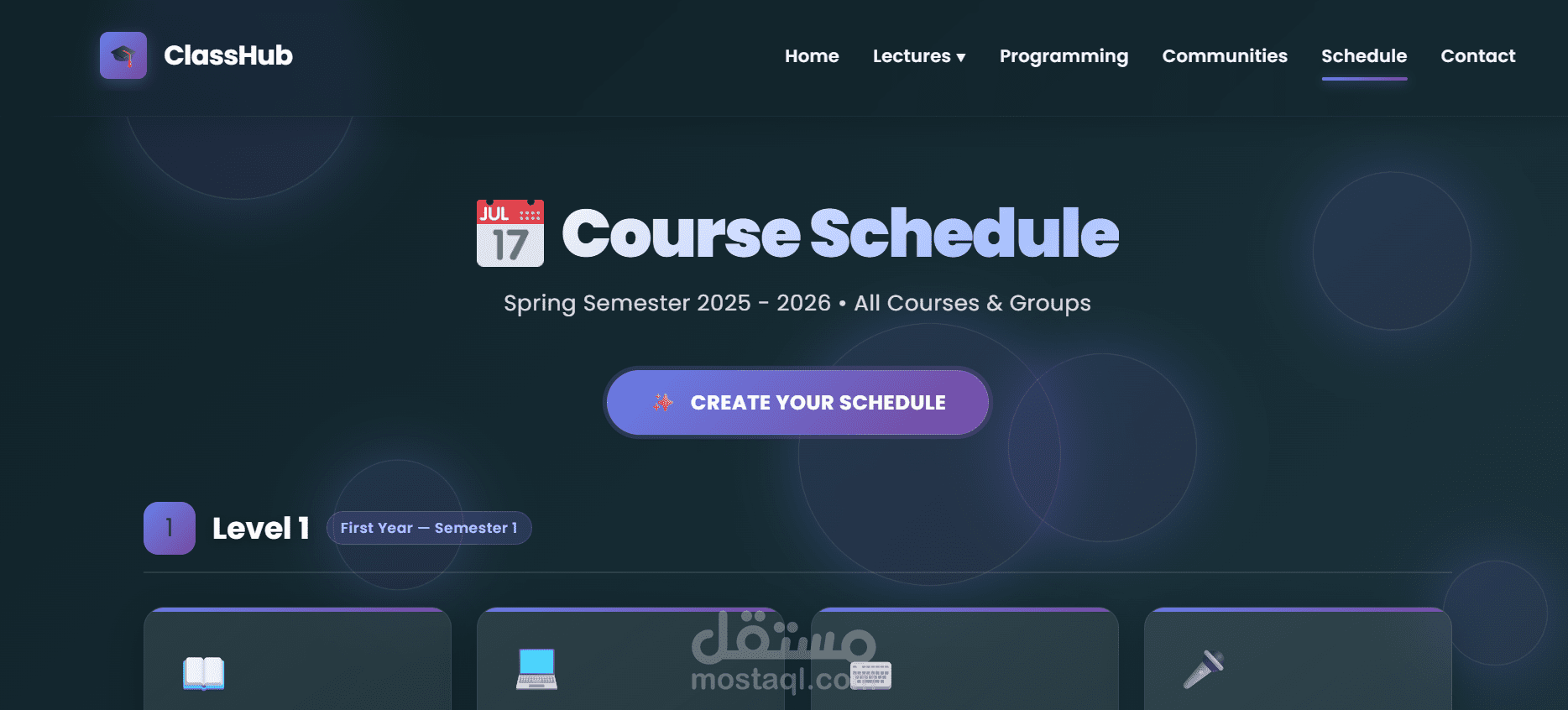 ClassHub is a comprehensive educational platform designed for Computer Science students to organize academic materials, lectures, and schedules efficiently.